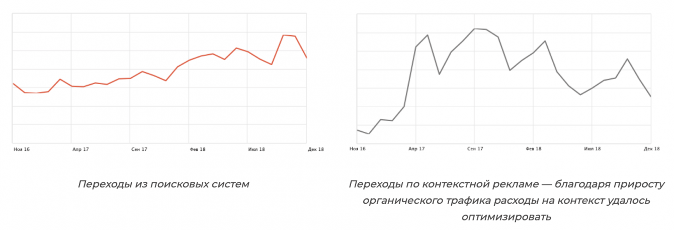 Провели SEO-оптимизацию: собрали заново семантическое ядро, добавили около 1500 новых целевых поисковых запросов, оптимизировали контент для страниц товаров.