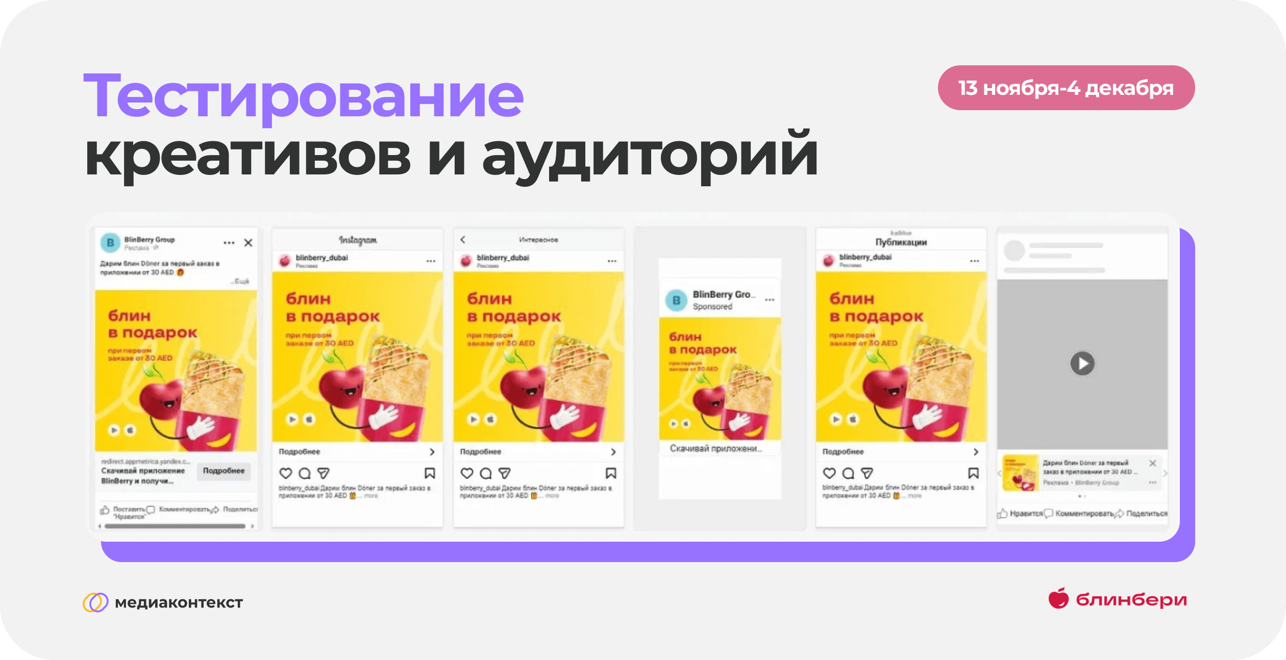 Ноябрь был стартовым месяцем для рекламных кампаний. С 13 ноября по 4 декабря проводился тест различных рекламных креативов и аудиторий. Основной целью была проверка эффективности кампаний на русскоязычную аудиторию в Дубае.