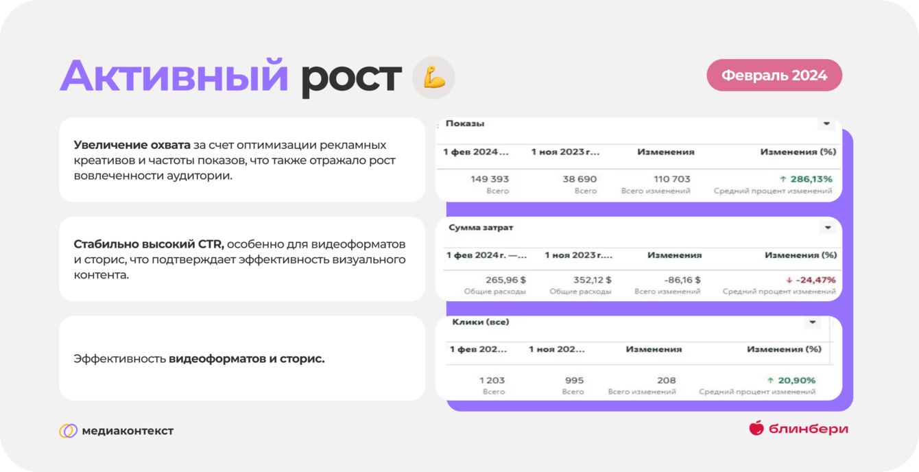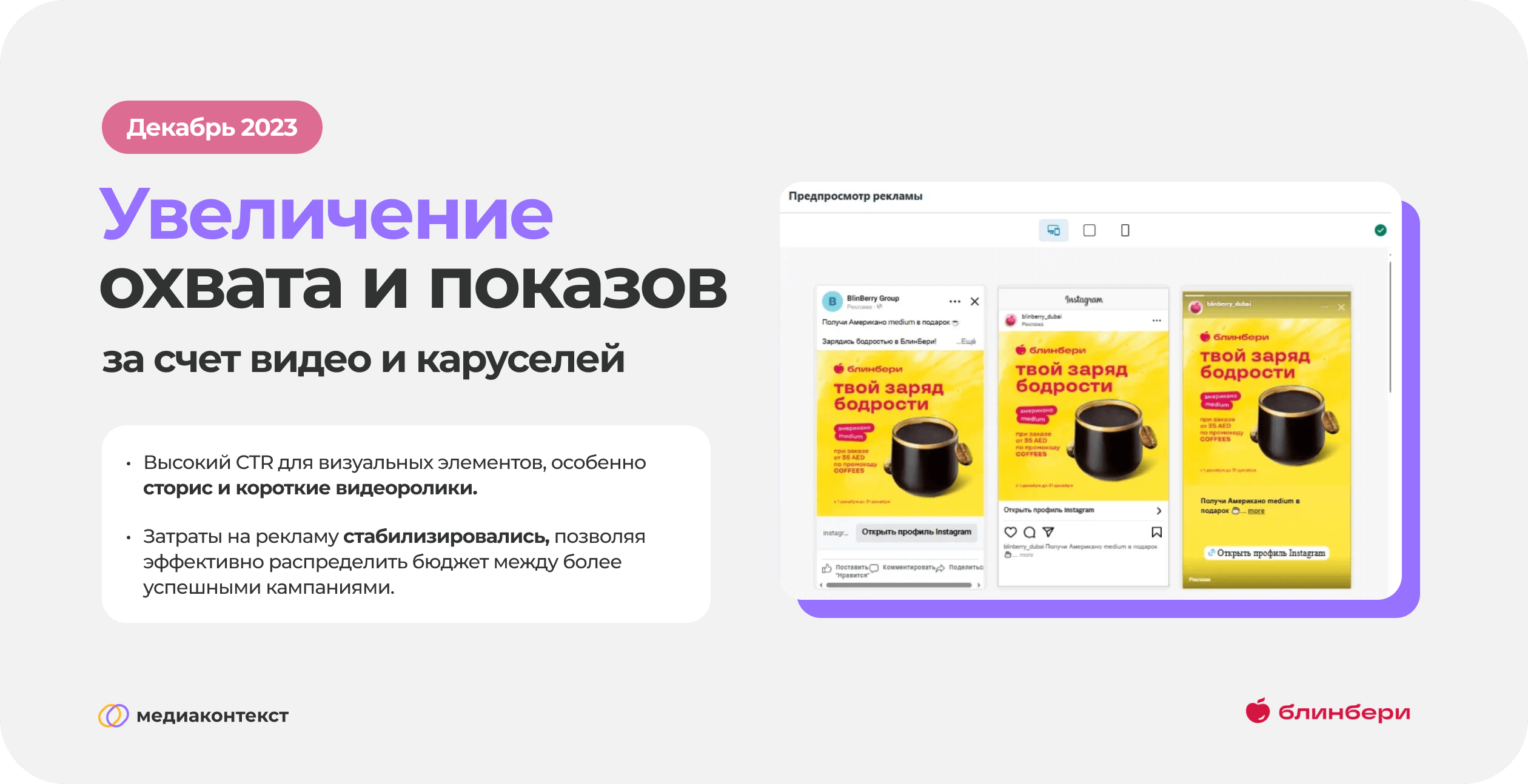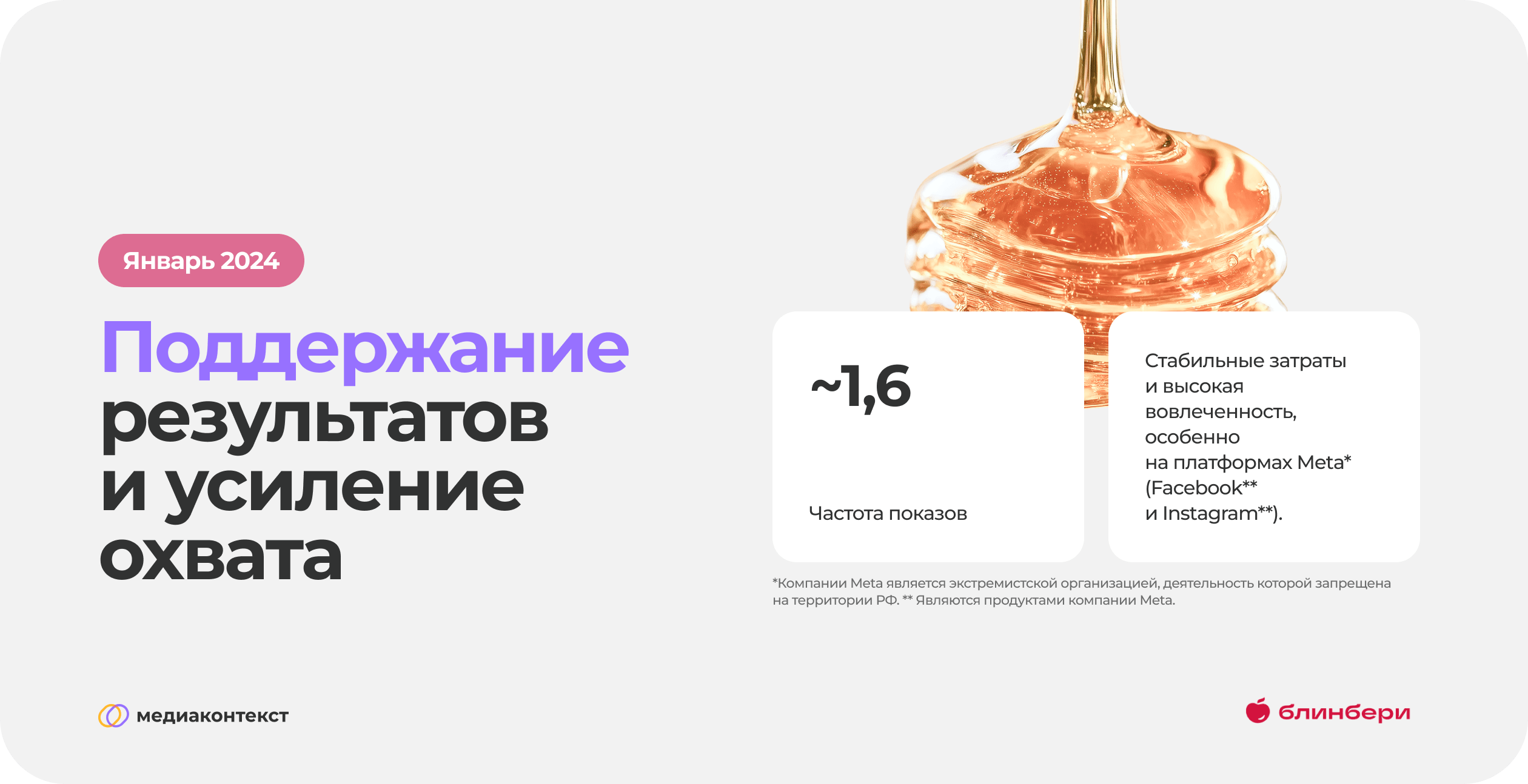 В январе 2024 года рекламные кампании были нацелены на поддержание результатов декабря и усиление охвата аудитории.