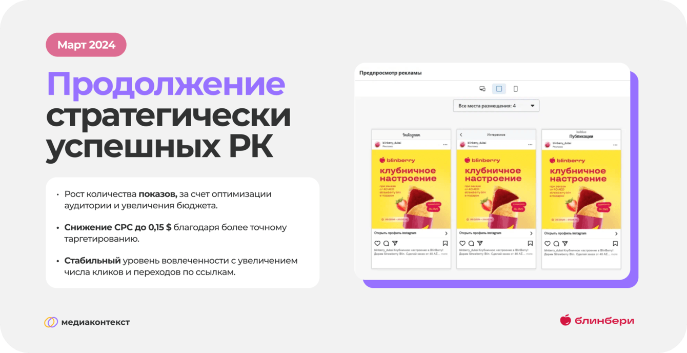 В марте 2024 года основной упор был сделан на продолжение стратегически успешных рекламных кампаний: