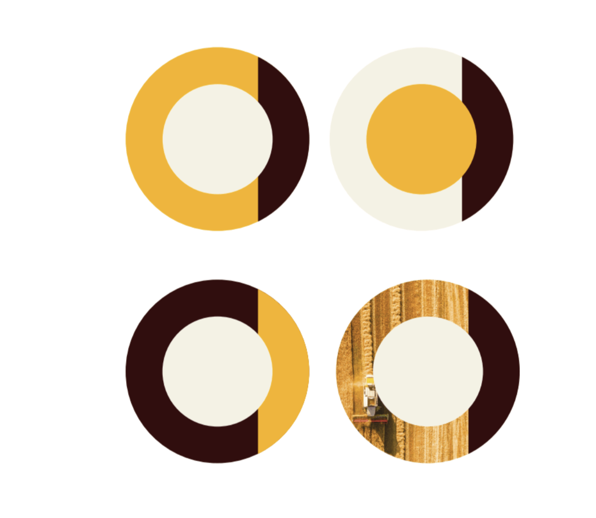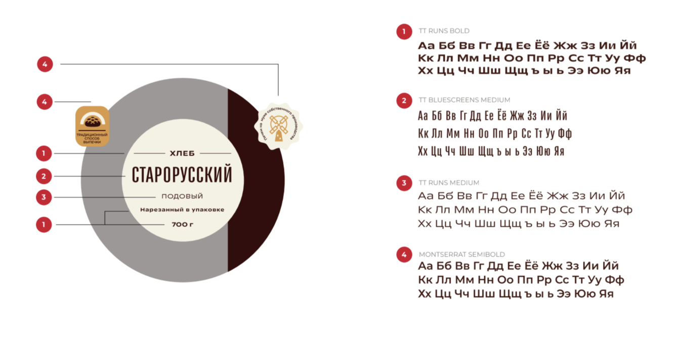Округлые формы, чёткие линии и мягкие углы выгодно подчёркивают фирменный стиль. Круг, как отсылка к мельничным жерновам и караваю - исконно русскому блюду.