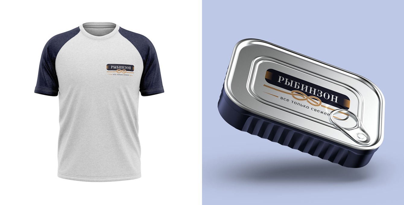 РЫБИНЗОН — в этом названии в первую очередь узнаётся герой одной из известнейших книг, который застрял на необитаемом острове. Отсылка к чему-то морскому есть, но поменяв одну букву в имени героя мы сделали упор на основной продукт компании — РЫБУ. Название одинаково хорошо звучит в двух версиях, как имя вымышленного героя, так и отсылка к некому рыбному месту.