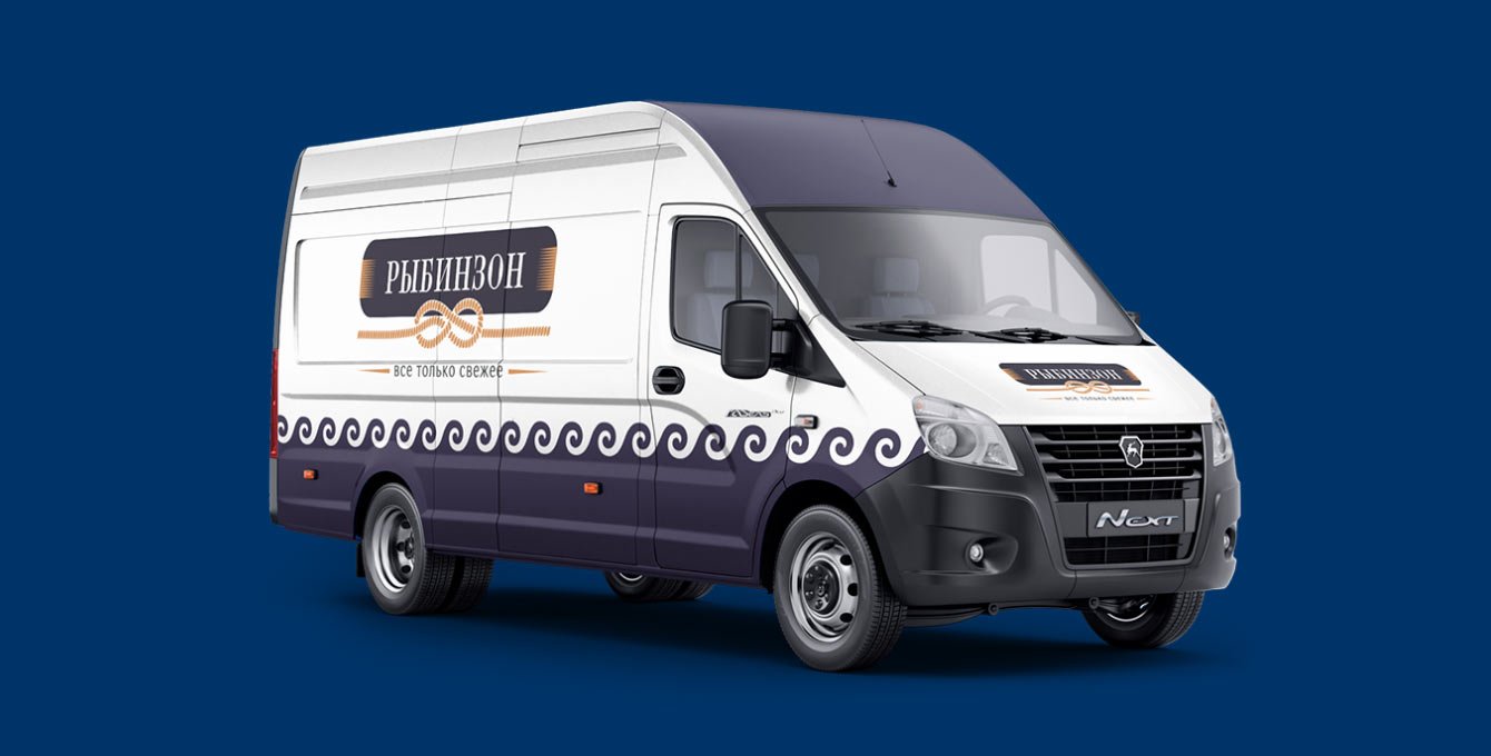 РЫБИНЗОН — в этом названии в первую очередь узнаётся герой одной из известнейших книг, который застрял на необитаемом острове. Отсылка к чему-то морскому есть, но поменяв одну букву в имени героя мы сделали упор на основной продукт компании — РЫБУ. Название одинаково хорошо звучит в двух версиях, как имя вымышленного героя, так и отсылка к некому рыбному месту.