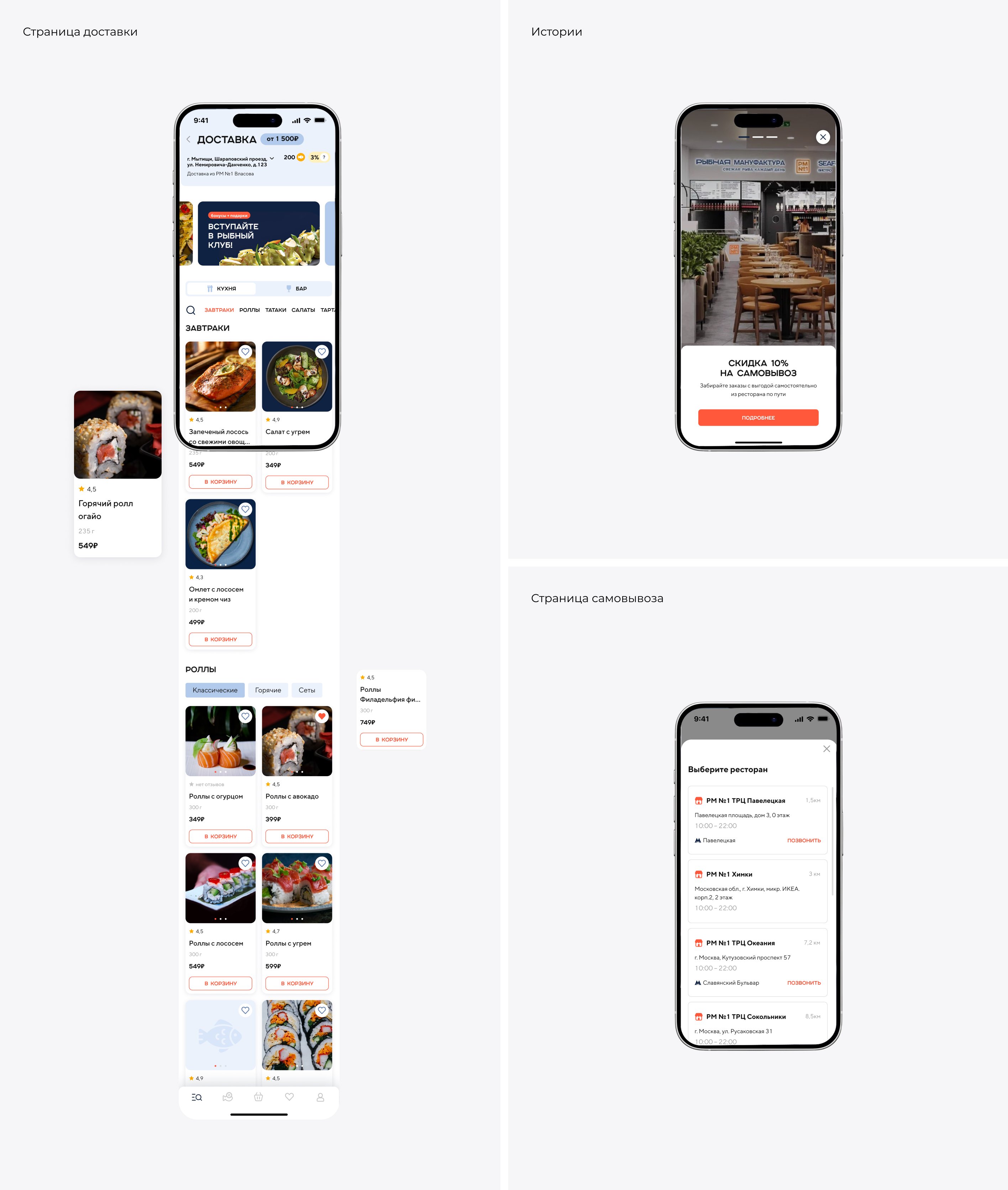 В приложении появились единые карточки товаров с возможностью быстрого выбора порции, добавок и других параметров.