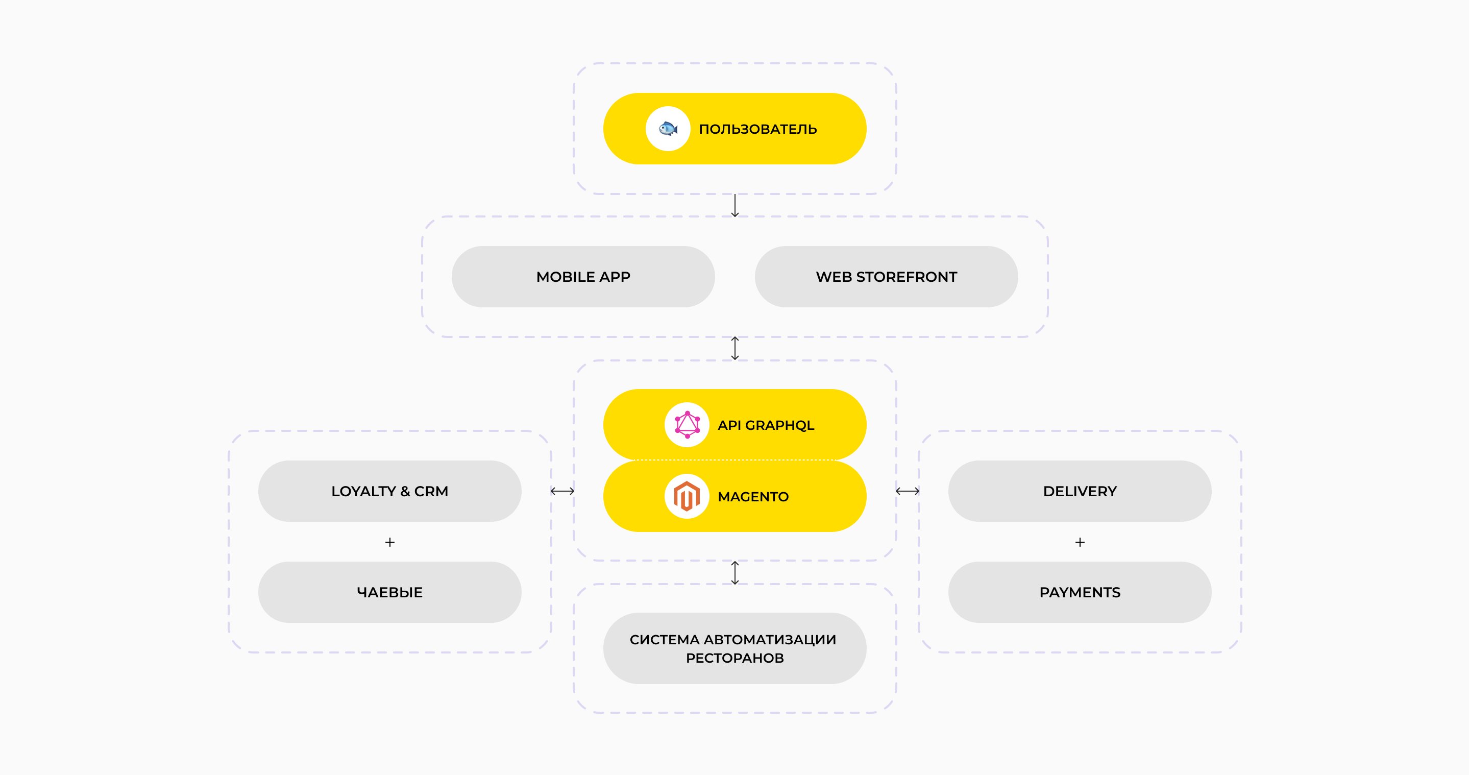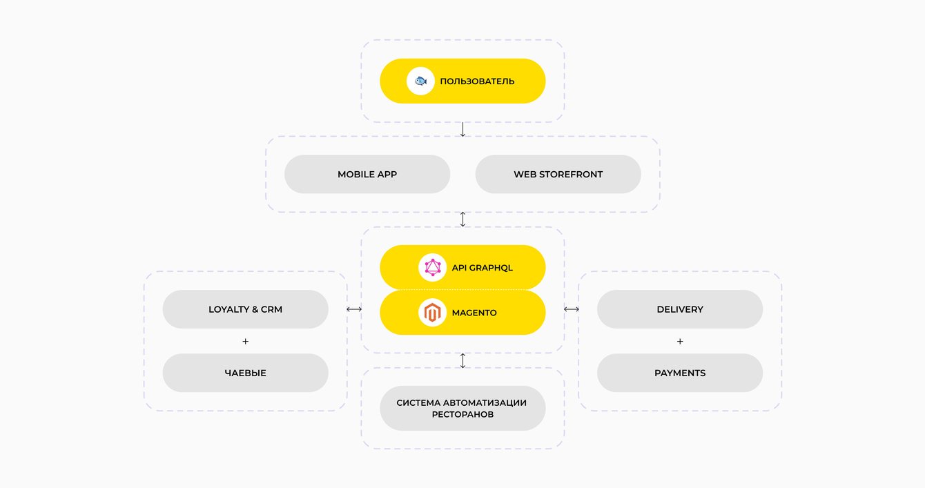 Архитектура приложения была полностью пересмотрена: команда отказалась от старой платформы и реализовала новое решение на базе Magento. Это повысило стабильность системы, упростило масштабирование и дальнейшее развитие цифровой экосистемы сети.