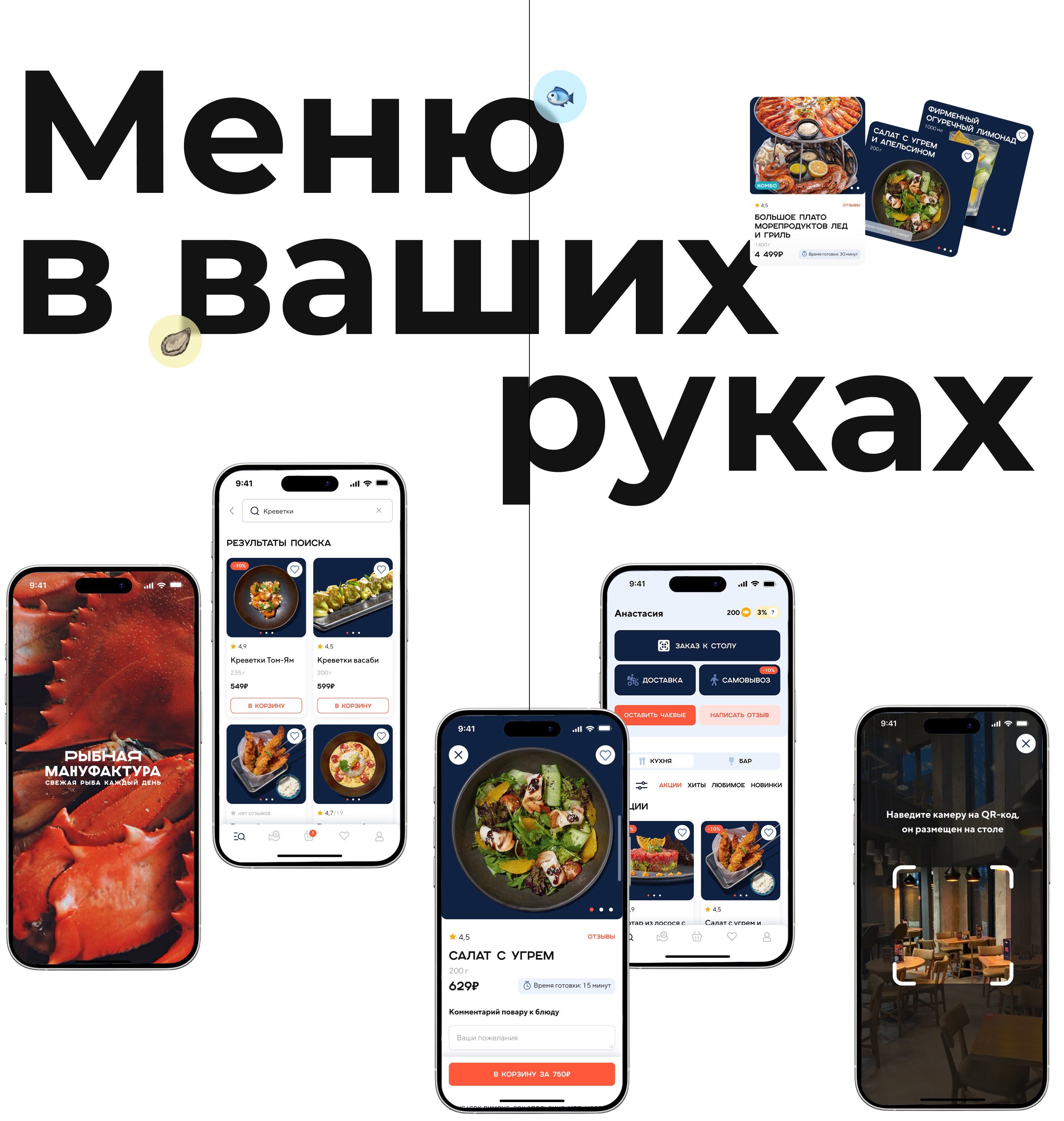 Команда провела серию глубинных интервью и рабочих сессий с представителями заказчика, чтобы выявить реальные сценарии использования и болевые точки гостей. На основе инсайтов был разработан новый интерфейс, который существенно сократил путь пользователя от выбора блюда до оплаты.