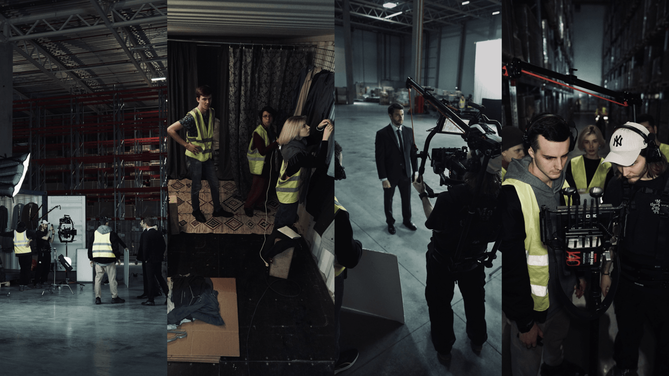 Найти подходящую по масштабам и задачам локацию - оказалось задачей со звездочкой. Для оптимизации процесса мы нашли большой склад, куда привезли фирменный контейнер. А он, в свою очередь, стал локацией для половины материала. Это позволило за одну смену снять то, что при других раскладах реализуется минимум за две.
