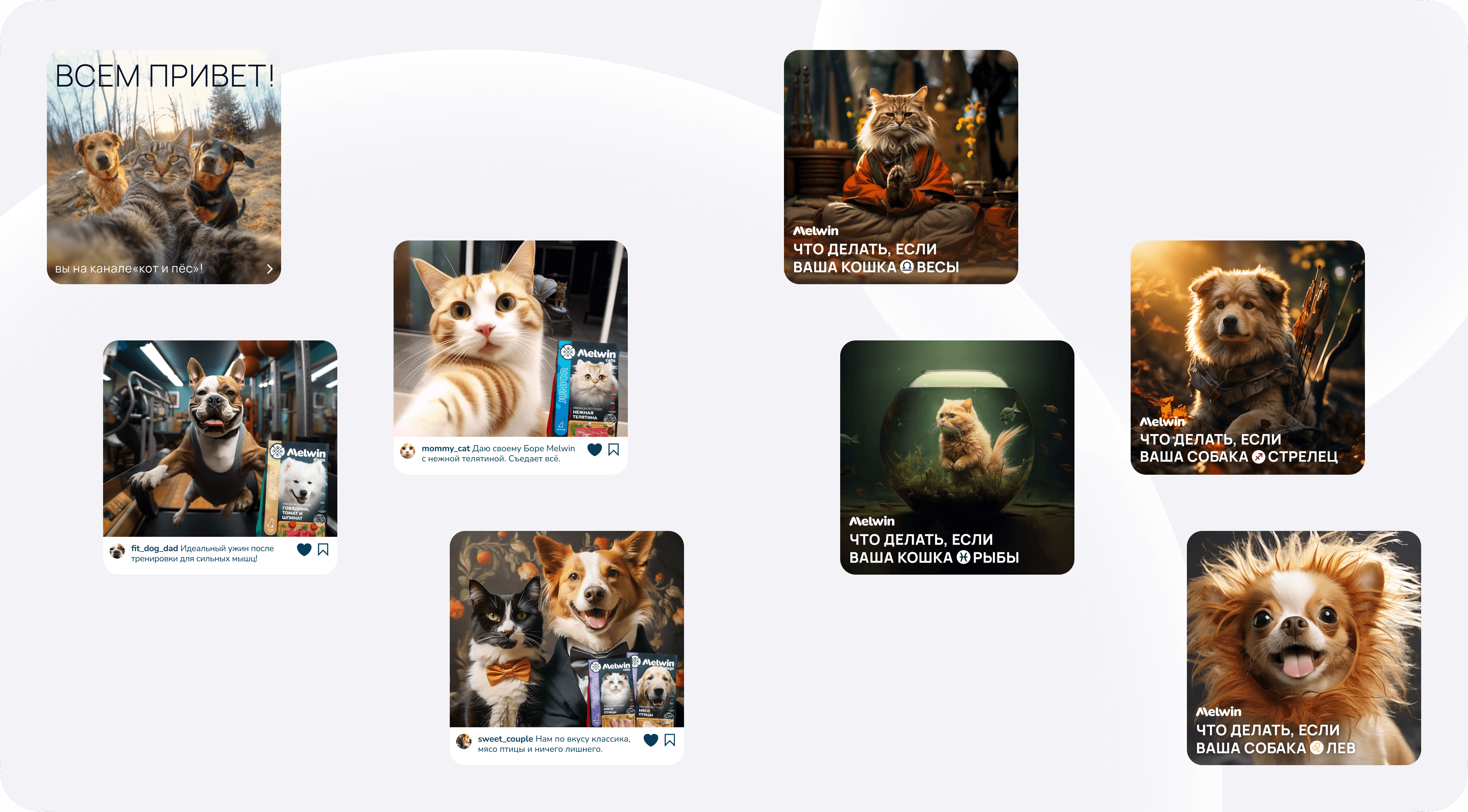 С помощью искусственного интеллекта фантазировали на разные темы, от пушистого репортажа до гороскопа для животных. И всё это — в фирменном стиле и цветовой палитре бренда.