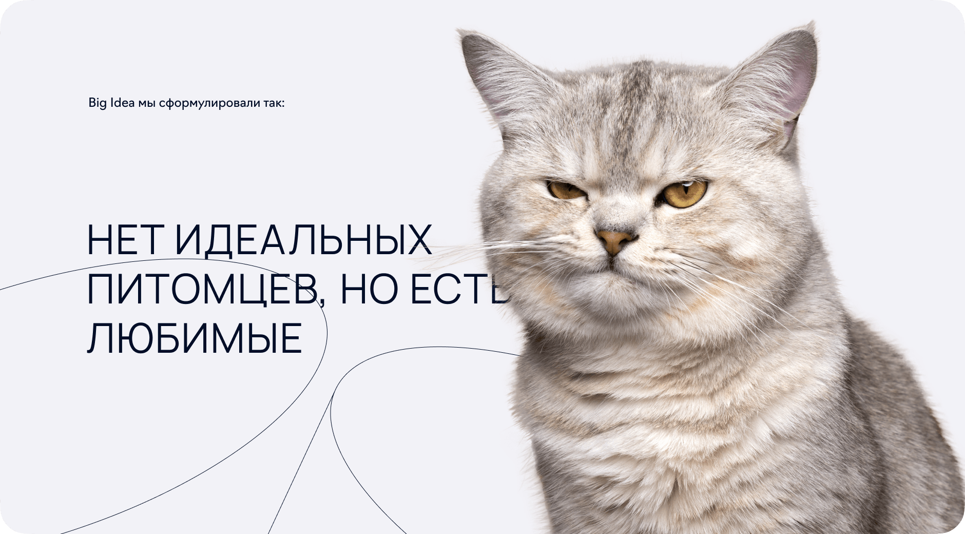 С животными жизнь становится хаотичнее, веселее, неконтролируемее и точно — лучше. Эту мысль мы показали через линейные рисунки питомцев, «вписывая» их в повседневность людей.