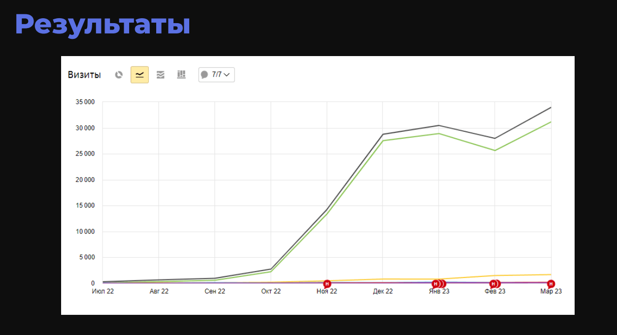 Мы гордимся за данный кейс, потому что нам удалось с нуля вырасти сайт по