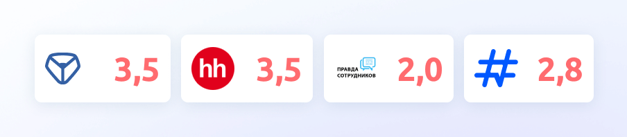 В среднем (вместе с остальными площадками) средний рейтинг по HR-направлению составлял 2,68 балла. Для рынка с высокой конкуренцией за кадры такой результат фактически означает клеймо «токсичный работодатель».