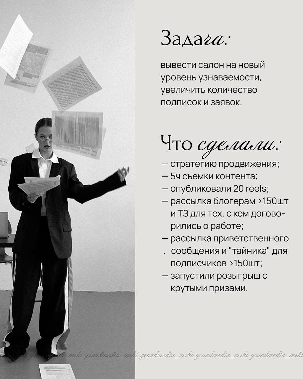 Вывести салон на новый уровень узнаваемости, увеличить количество подписок и заявок.