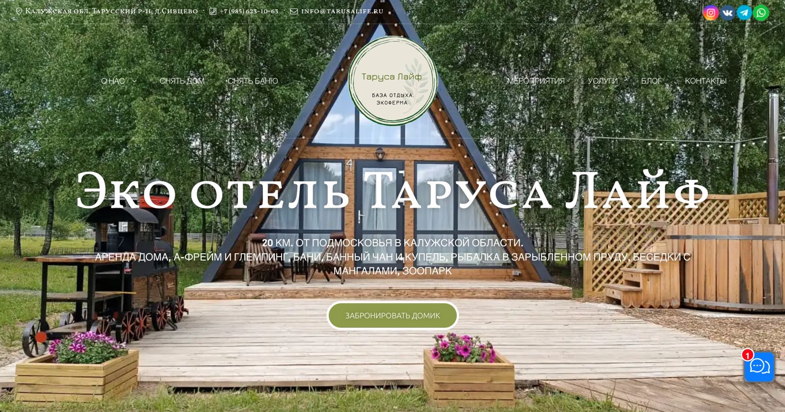 Клиент: Небольшая база отдыха в 120 км от Москвы для семейного и корпоративного отдыха. Аренда домиков, А-фреймов с купелью и русской бани на дровах. Глэмпинг с банным чаном. Рыбалка в пруду, беседки с мангалами, летний бассейн, детская площадка. Экоферма.