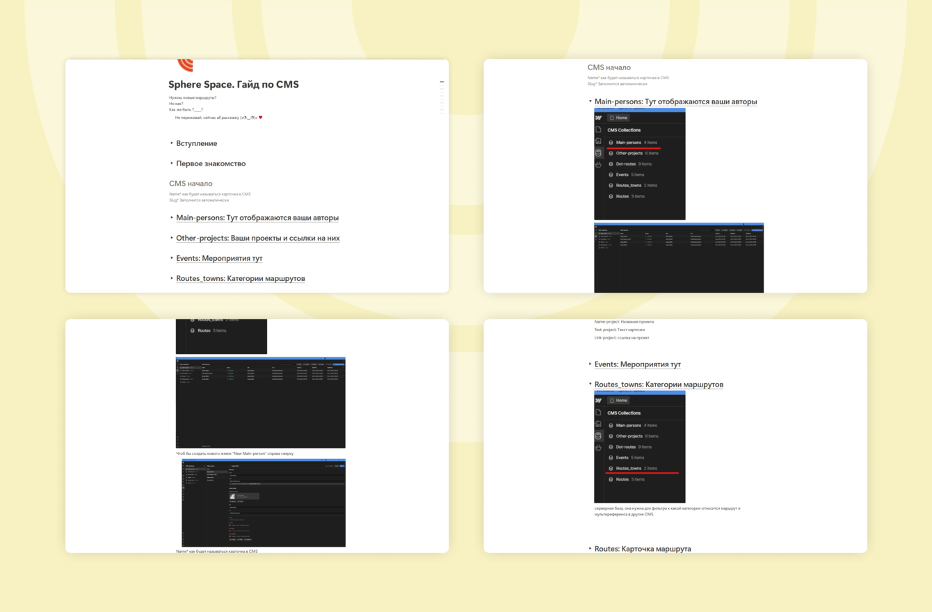 — Разработали удобную админку и подробные гайды — чтобы Sphere Space могли сами пополнять сайт инфой и добавлять маршруты в едином стиле;