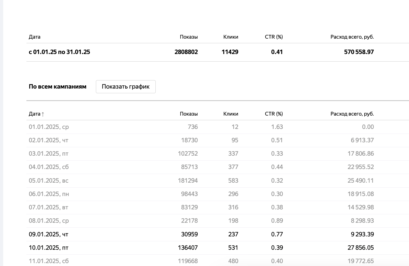 В октябре 2024 года к нам обратился клиент, у которого более 7 подрядчиков по Яндексу. Основная проблема клиента: почти ни один из подрядчиков не может откручивать бюджет более 1 млн. рублей в месяц с плановым KPI по цене регистрации и ROMI. От нас требовалось стать тем подрядчиком, который сможет решить эту проблему.