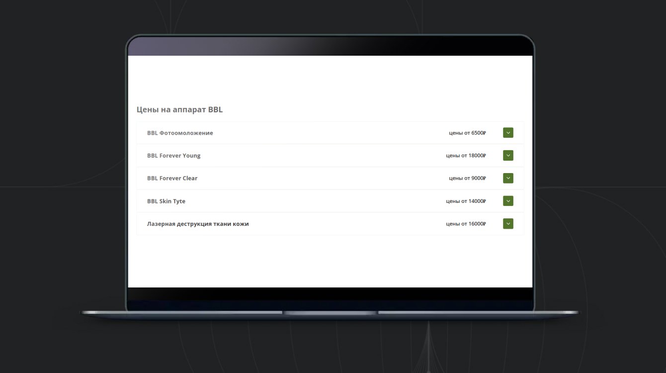 Визуально было видно: сайт плохо охватывает коммерческие запросы, особенно в разделе «Аппаратная косметология». Чтобы исправить это, мы создали новые страницы под услуги со спросом.
