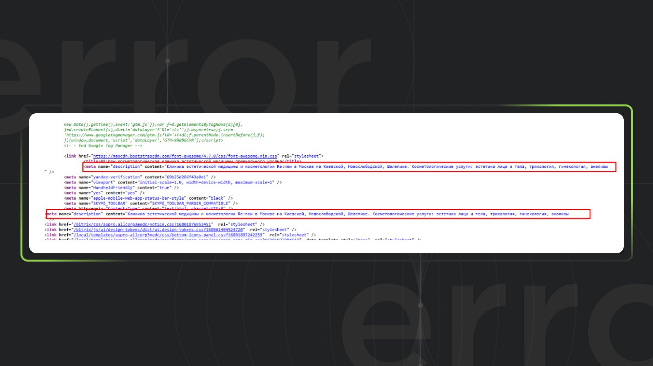 • Устранили технический шум и привели мета-теги к корректному виду для поисковых систем.