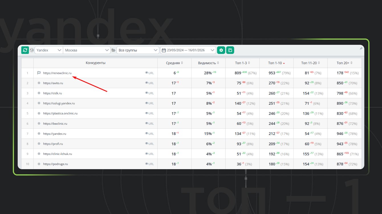 Команда OVERCLICK помогла нам значительно усилить присутствие клиники Renew в поисковых системах. Благодаря системной SEO-работе мы заняли лидирующие позиции по аппаратной косметологии в Яндексе и Google и начали получать стабильный поток заявок из органического поиска.