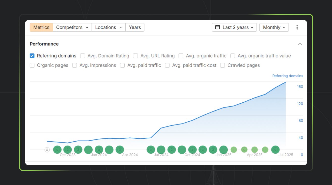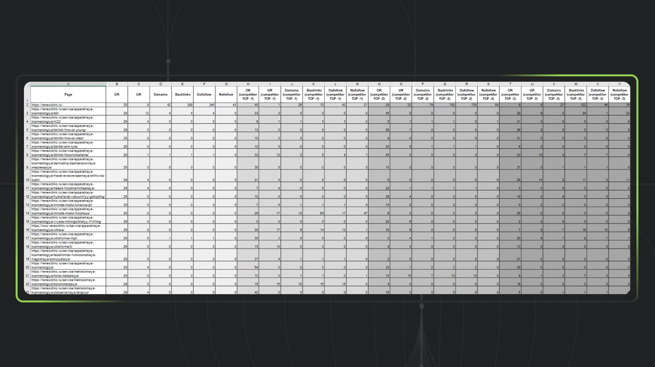 Сравнили продвигаемые страницы с ТОП-3 конкурентами в Google по ссылкам и донорам. Вывод: у наших страниц почти нет ссылок, у конкурентов – десятки. Приняли решение наращивать ссылочную массу по приоритетным услугам.