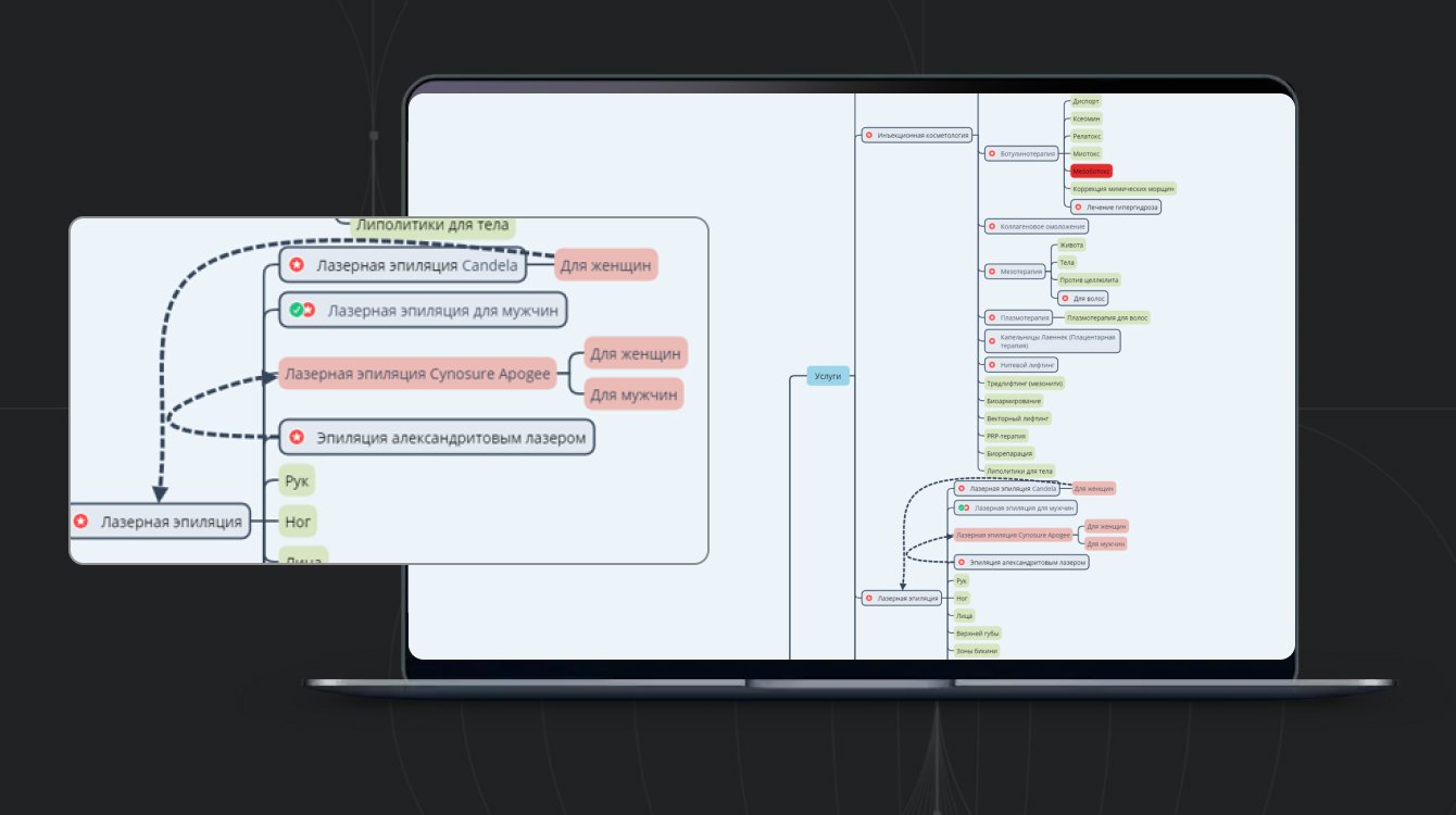 Приоритет – продвигать наиболее маржинальные услуги, преимущественно из аппаратной косметологии, с акцентом на конкретные позиции, а не на категорию в целом.
