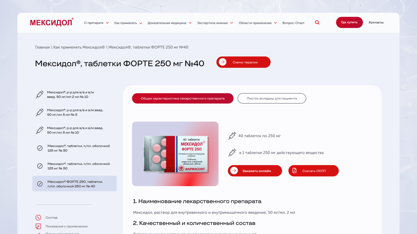 Предыдущий сайт Мексидол® устарел — не только визуально, но и функционально.