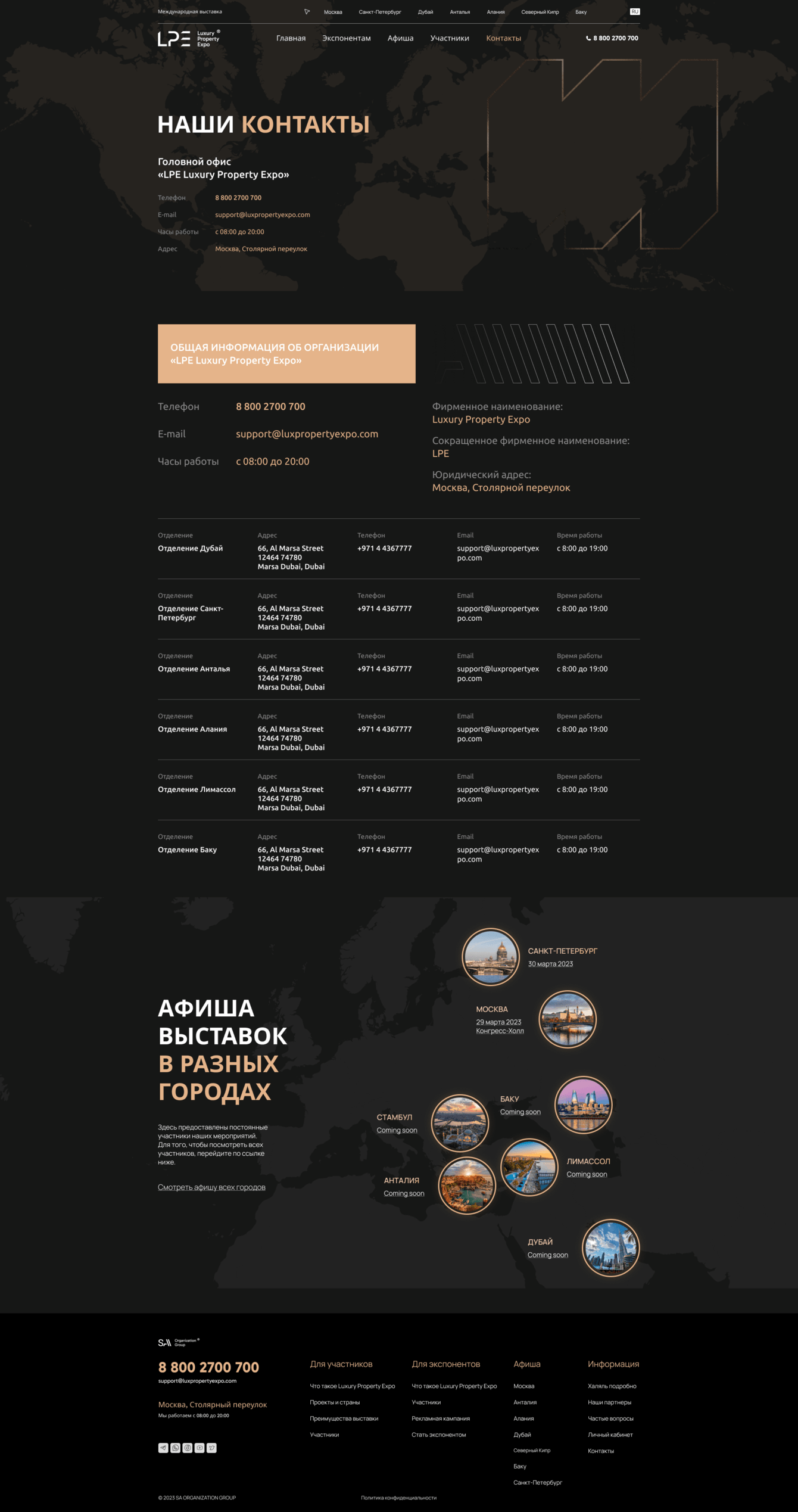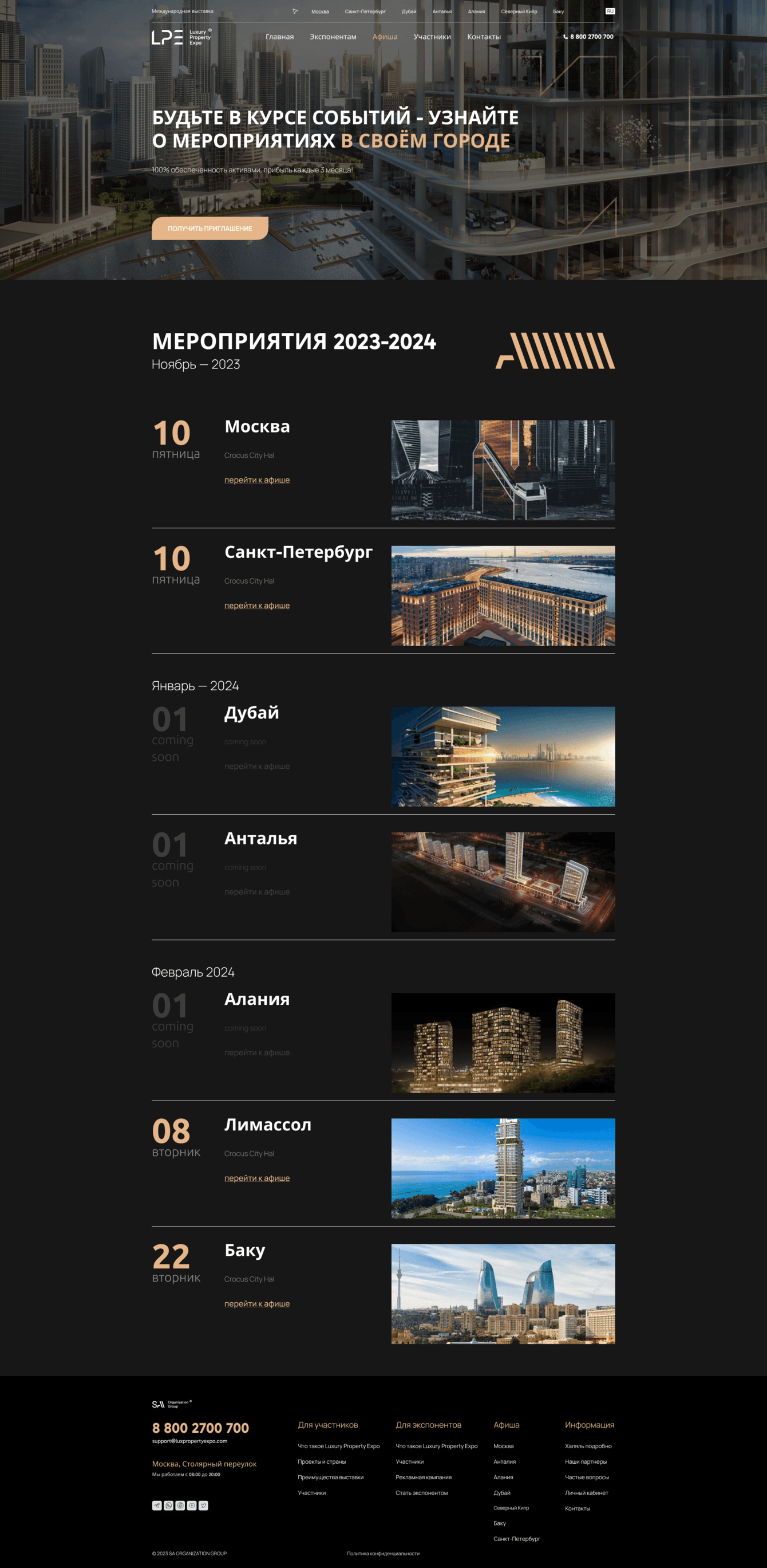 Цель: Разработка сайта для организации международных мероприятий по недвижимости. Сайт разработан для организации SA ORGANIZATION GROUP.