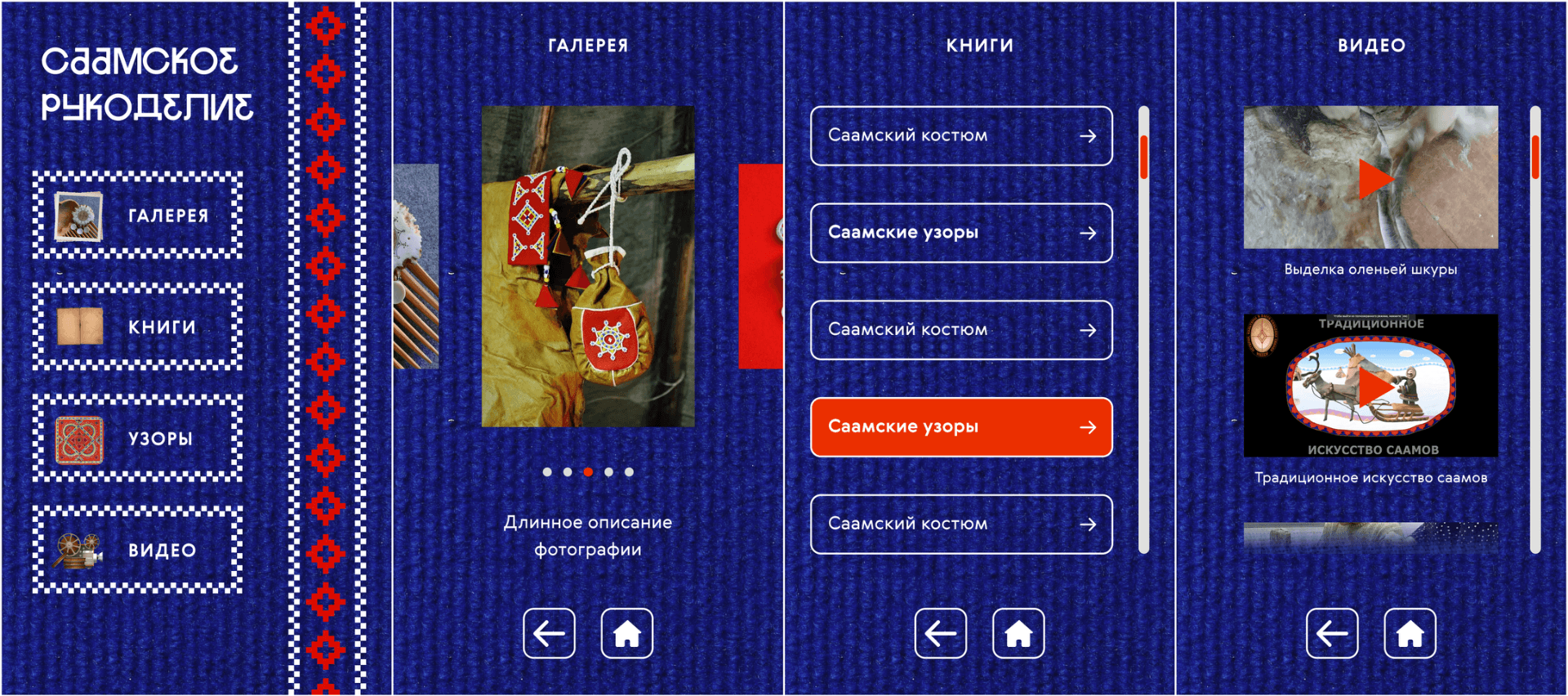 Создали интерактивную инсталляцию для музея. Теперь множество людей способны посмотреть изделия ручной работы и почитать редкие книги. Также можно поиграть в игру на запоминание саамских иероглифов и посмотреть различные видео саамской культуры.