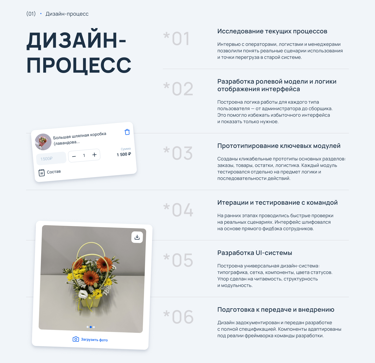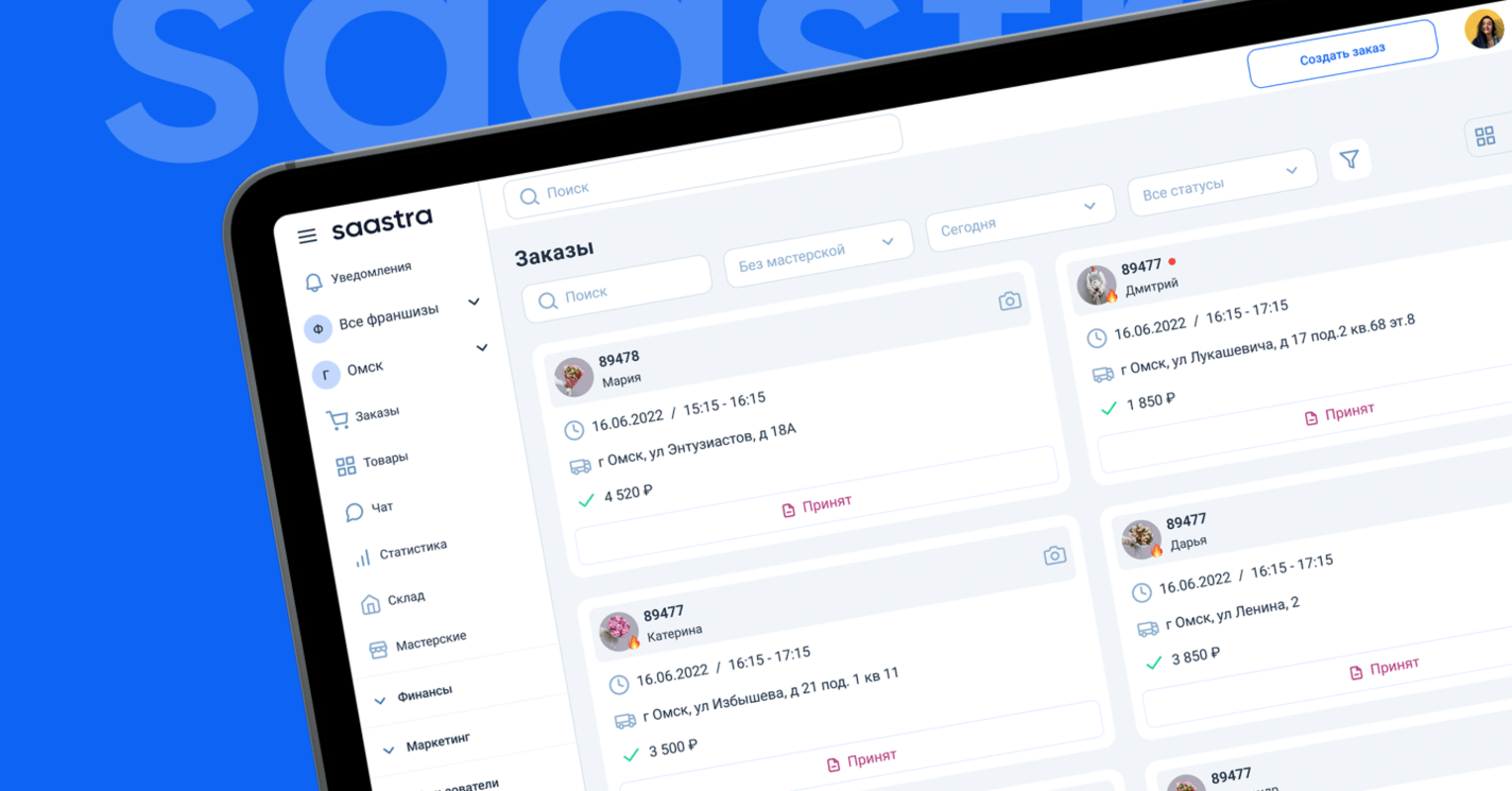 Задача: разработать единый инструмент для управления заказами, логистикой, товарами, мастерскими и складскими остатками.