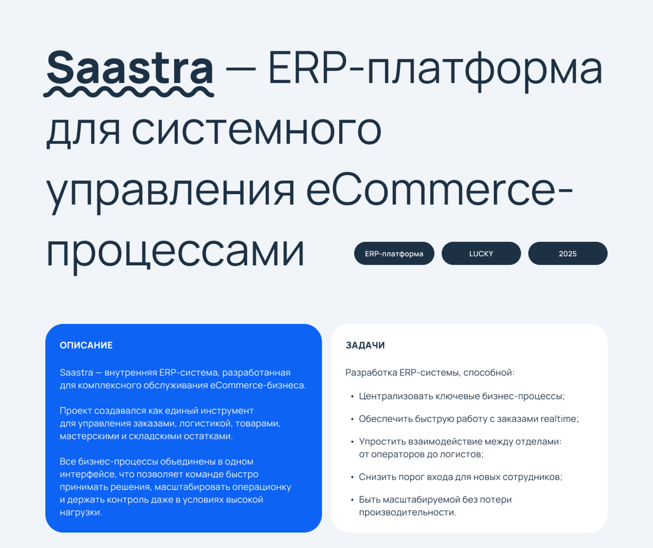 Команда Lucky IT — это редкий случай, таких еще не встречал! На них можно положиться на все 100%. Любая задача — решаема, любая хотелка — реализуема. Даже в праздники и ночью — всегда на связи, всегда с идеями и решениями. Мы начинали с простых процессов, а теперь управляем всем бизнесом через их систему. И самое главное — работа не останавливается. Продолжаем развивать проект вместе, и я уверен: с Lucky IT нет ничего невозможного.
