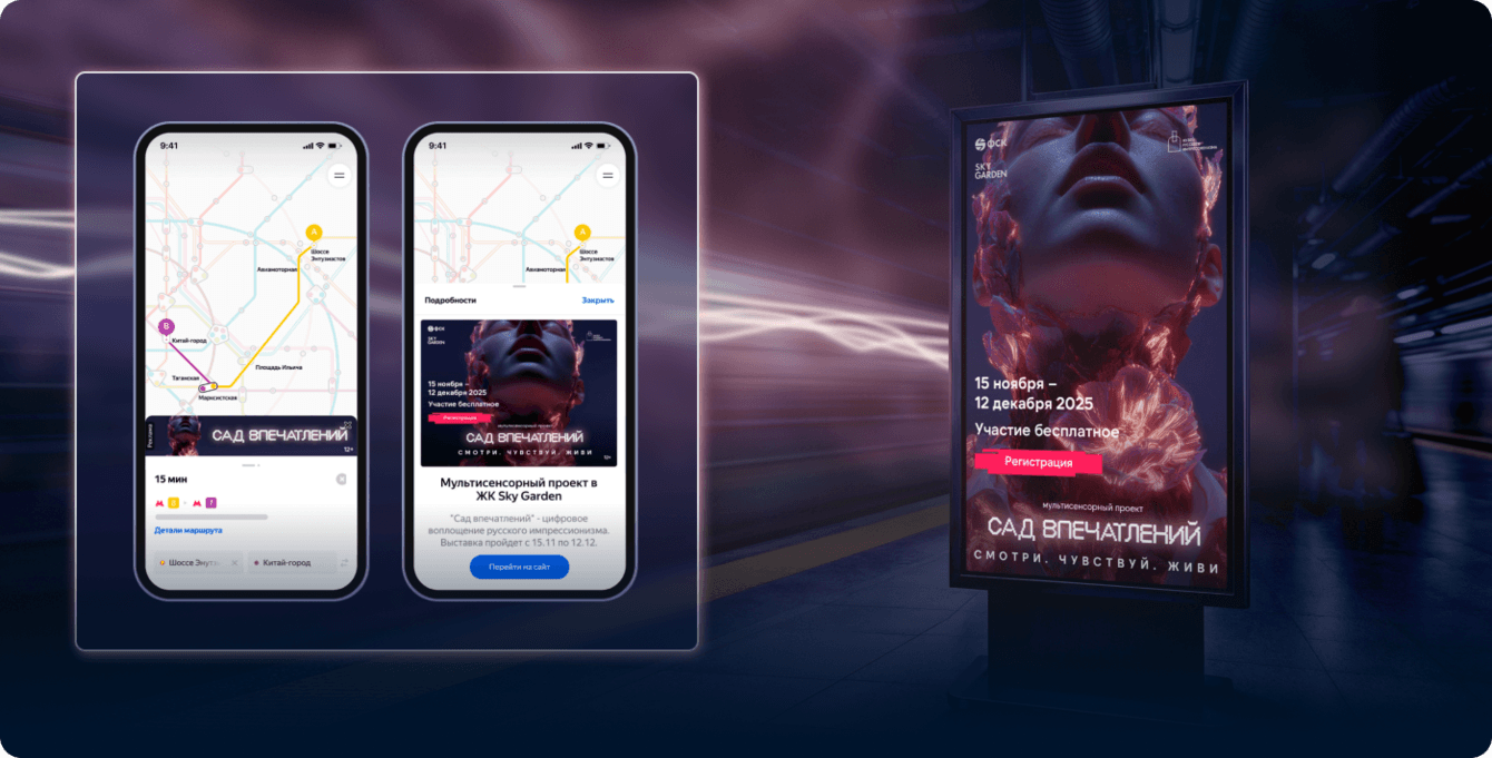 Мы выстроили стратегию, в которой каждый рекламный контакт — от DOOH до промостраницы — был не ради охвата, а ради действия: визита, заявки, интереса к жилому комплексу. В итоге рекламная кампания не просто привела посетителей на выставку — она сформировала новый взгляд на территорию, активировала лояльную аудиторию и открыла новый канал коммуникации между брендом и городом.