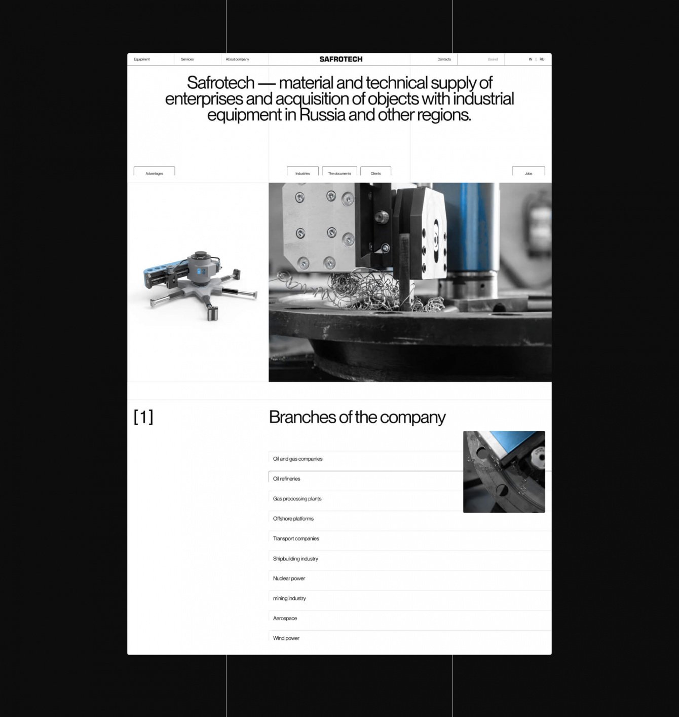 Необходимо было создать практически платформу всей компании, через которую она сможет рассказывать о своей работе, продвигать свои услуги и продавать оборудование.