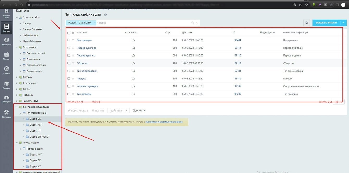 • Управление настройками Классификаций построено на управлении инфоблоками.