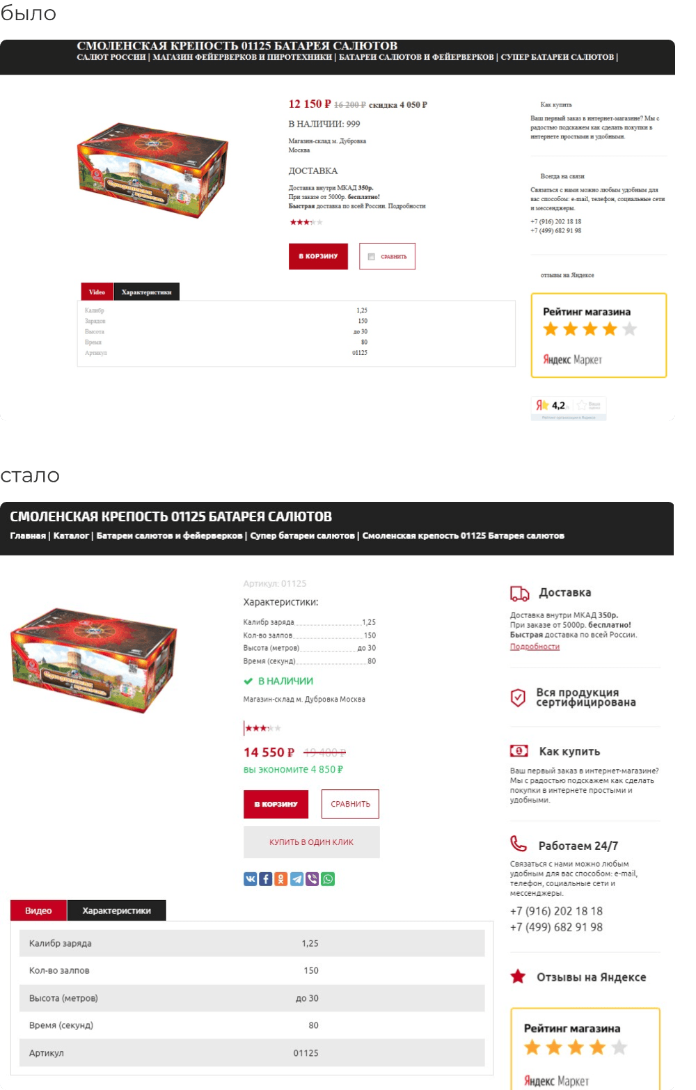 5. Новый дизайн карточки товара, с учетом поведенческих факторов, анализа конкурентов и пожеланий клиента.