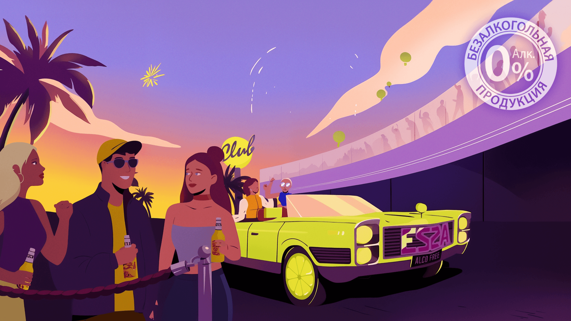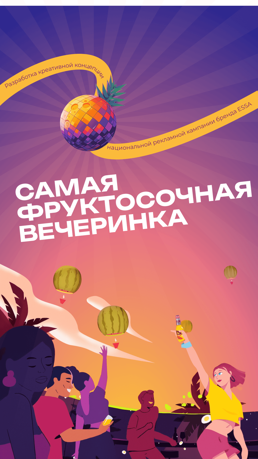 Разработка креативной концепции национальной рекламной кампании бренда ESSA. Задача стояла амбициозная: отойти от стандартного визуального ряда "вечеринка+неон" и предложить совершенно новое образное решение для освежающего напитка с насыщенными фруктовыми вкусами.