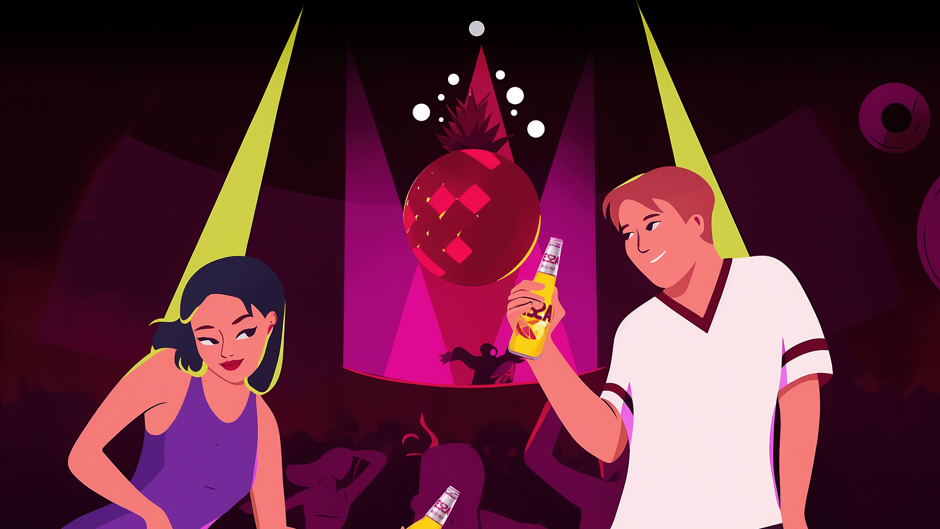 Команда FABULA предложила концепцию «Самая фруктосочная вечеринка». Вместо банальных клубных паттернов мы создали метафоричный фруктовый мир, в котором каждый вкус ESSA становится ярким героем вечеринки: