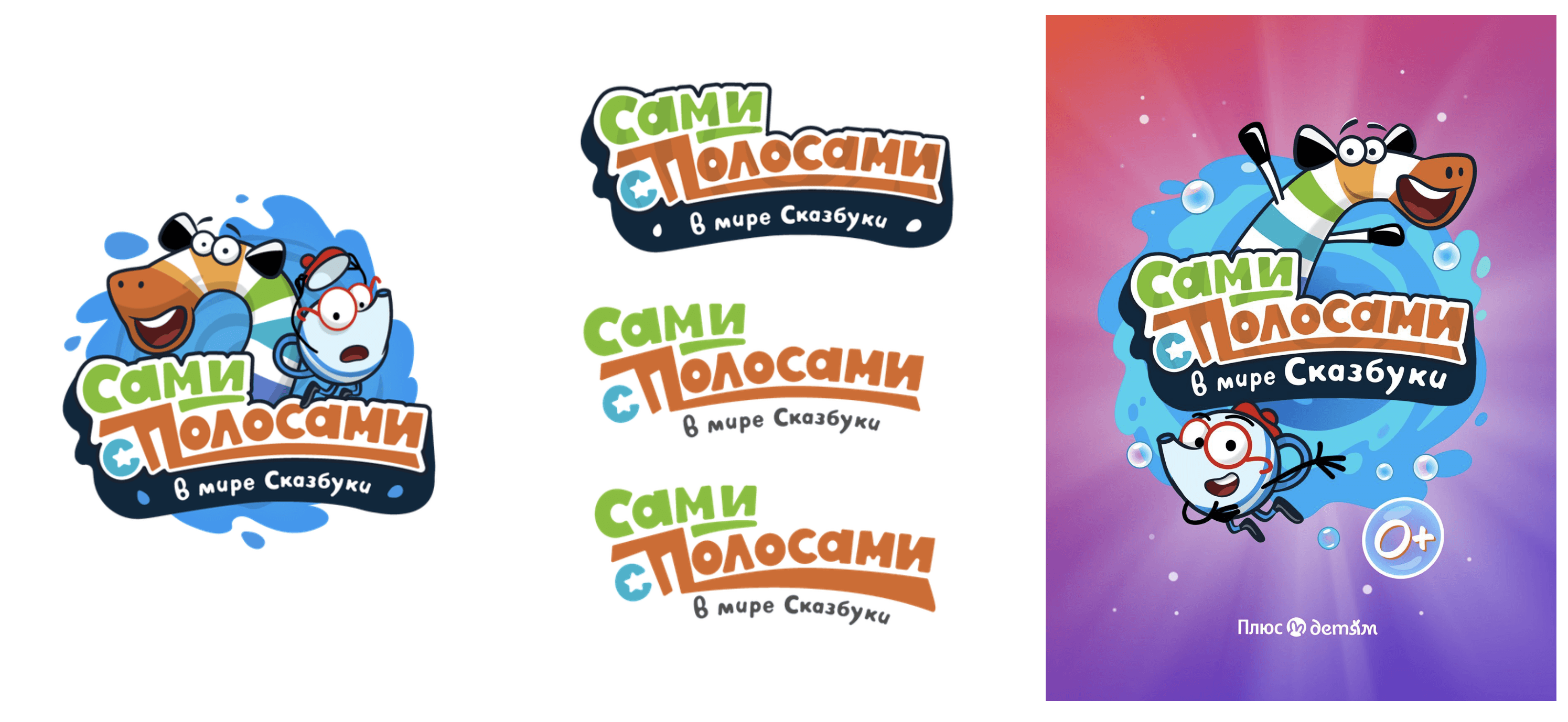 Логотип сделали простым и легко читаемым. Мы встроили его в водную струю вместе с персонажами, чтобы сохранить динамику и дух сказки.