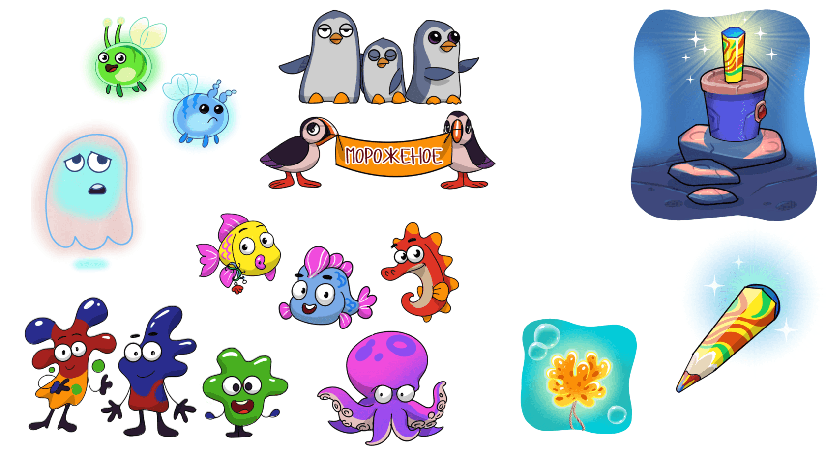 Особое внимание мы уделили фонам. Их сделали выразительными, но не перегруженными деталями, чтобы детям было легко следить за сюжетом.