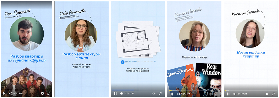 Монтаж стал ключевым элементом работы. Мы регулярно создавали видеоролики и рубрики для социальных сетей бренда. Один из примеров — серия, где квартиры сравниваются с интерьерами любимых сериалов, например «Друзья». Директор по продукту Самолет, Леон Пряжников, рассказывает, как в ЖК можно найти квартиру, похожую на любимый интерьер, будь то большая гостиная с диваном посередине или просторная кухня рядом. Такой контент попадает точно в целевую аудиторию 25–35 лет — людей, которые сейчас выбирают квартиру.