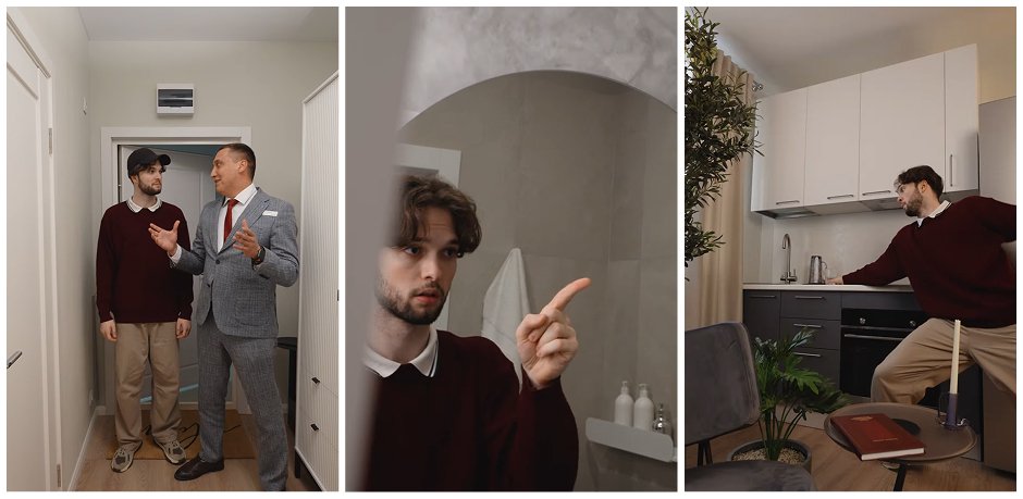 Мы соединили эту историю с танцами, где пластичный исполнитель динамично танцует дома и показывает тем самым всю квартиру вокруг.