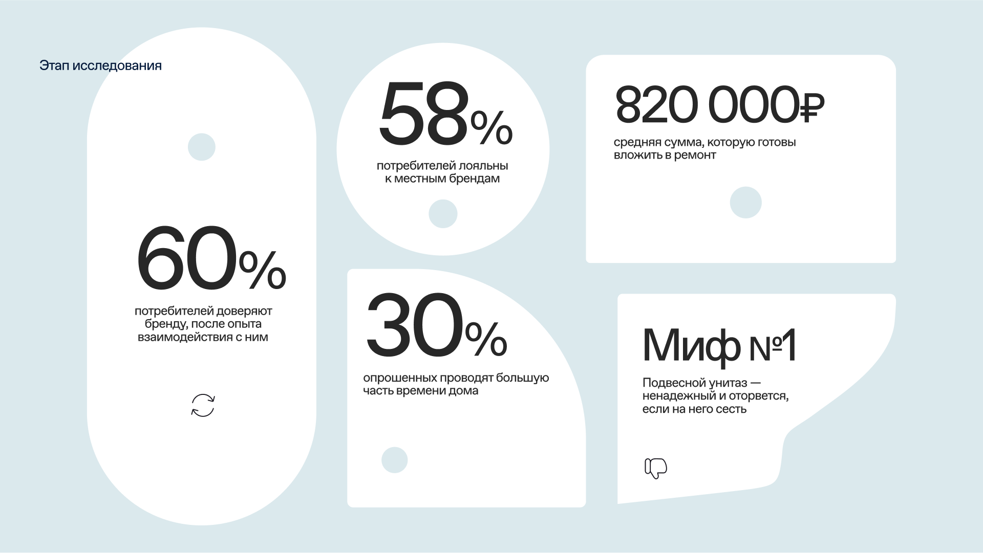 Для достижения эффективного результата мы разработали стратегию, направленную на четыре ключевых сегмента аудитории. Хотя все сегменты объединяет стремление к комфорту и надёжности, каждый из них требует индивидуального подхода. Мы отошли от идеи единого корпоративного цвета и создали яркий, монохромный визуал, вдохновленный эстетикой Уэса Андерсона, с белоснежной сантехникой в центре внимания.