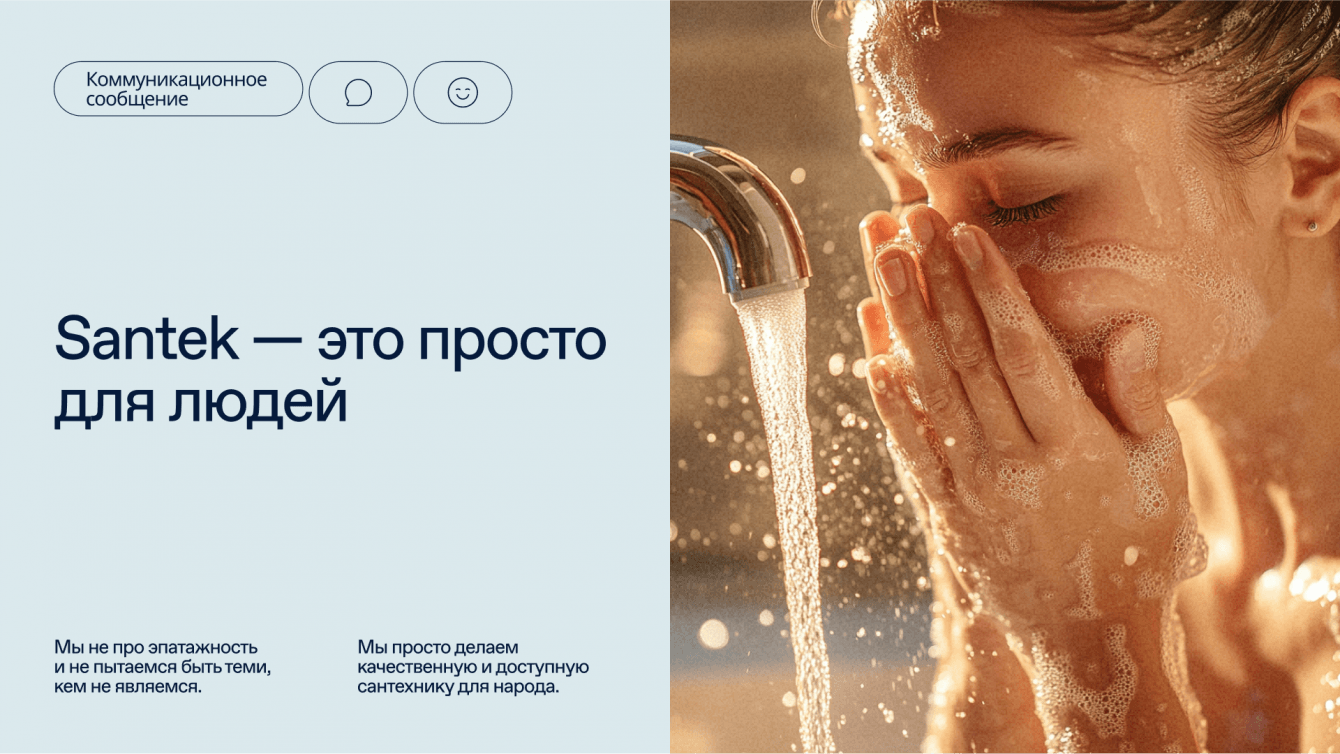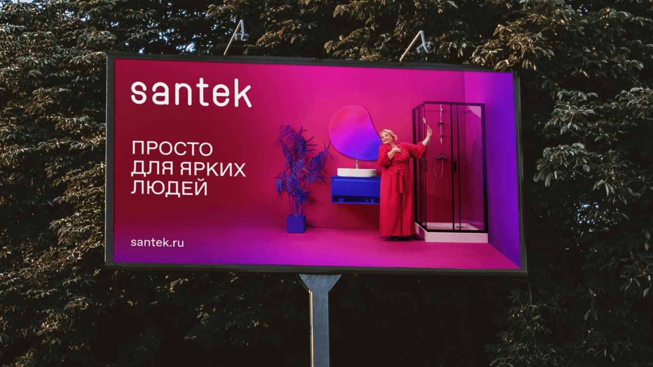 Мы начали с исследования рынка и целевой аудитории. Santek — это российский бренд сантехники, который уже давно завоевал признание среди покупателей. Его неоднократно выбирали лучшим в рамках премии «Марка №1 в России», что говорит о высоком уровне доверия потребителей. Нам предстояло сохранить эту репутацию, при этом придать кампании современный акцент. Как отметила директор по маркетингу и PR Santek, Кира Полянина, бренд давно вышел за рамки «бюджетной сантехники» и заслуживает нового, более широкого месседжа, обращённого к современной аудитории.