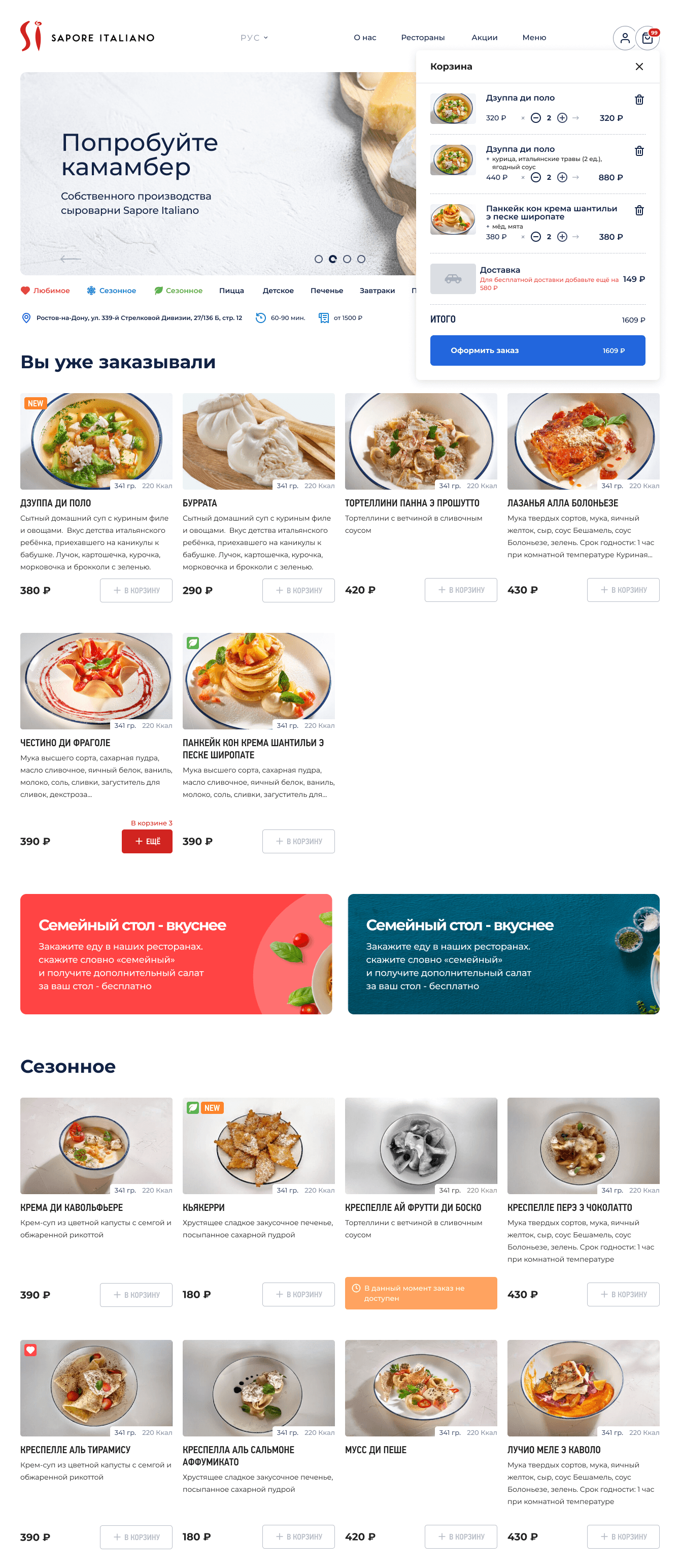 Разработать сайт для онлайн-заказа блюд из ресторанов сети Sapore Italiano.