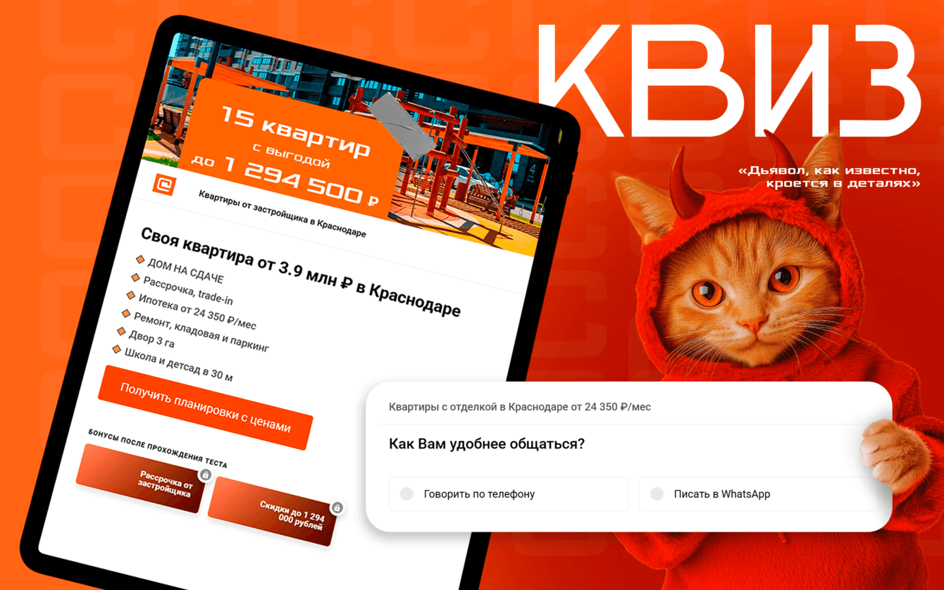Так как застройщик малоизвестен, общий квиз дал наилучший результат, однако все равно для достижения цели этого было мало — качественных лидов не хватало.