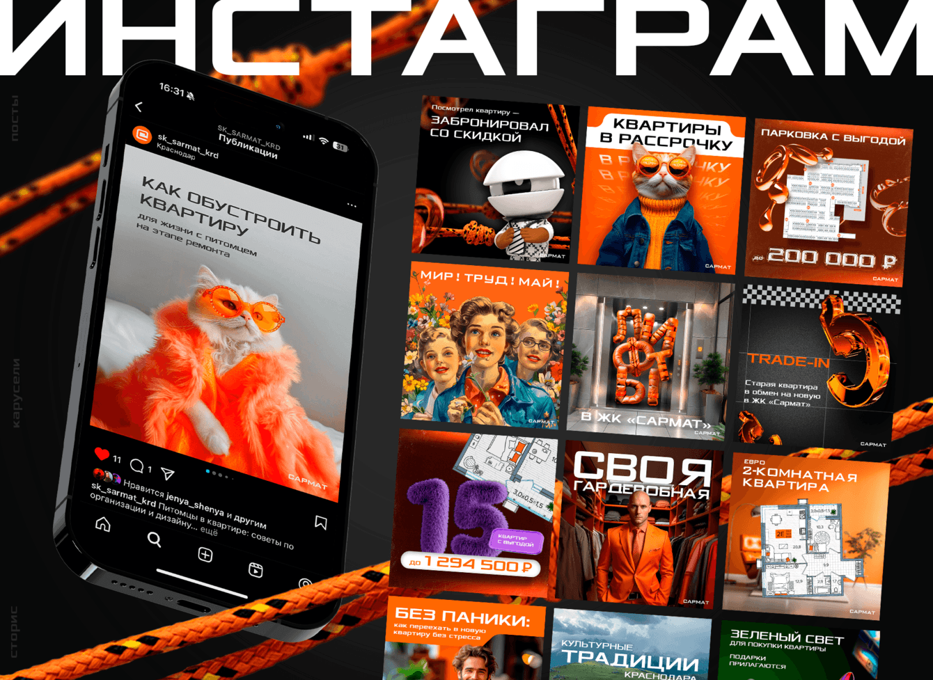 Поэтому в контенте активно были задействованы акции на квартиры и другие выгодные предложения, информация о строительстве жилого комплекса, живой контент, обзоры планировок и инфраструктуры района, рум-туры и полезные советы по обустройству квартир. И, конечно, контакты для связи в один клик практически в каждом посте.