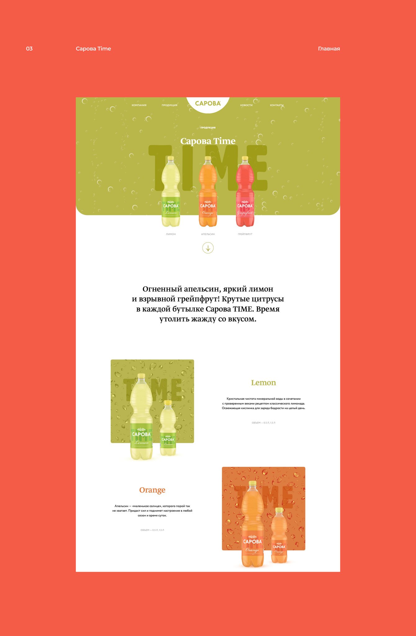 Раздел «Сарова TIME» – заряжающий, освежающий и динамичный. Три ярких вкуса, три ярких цвета.