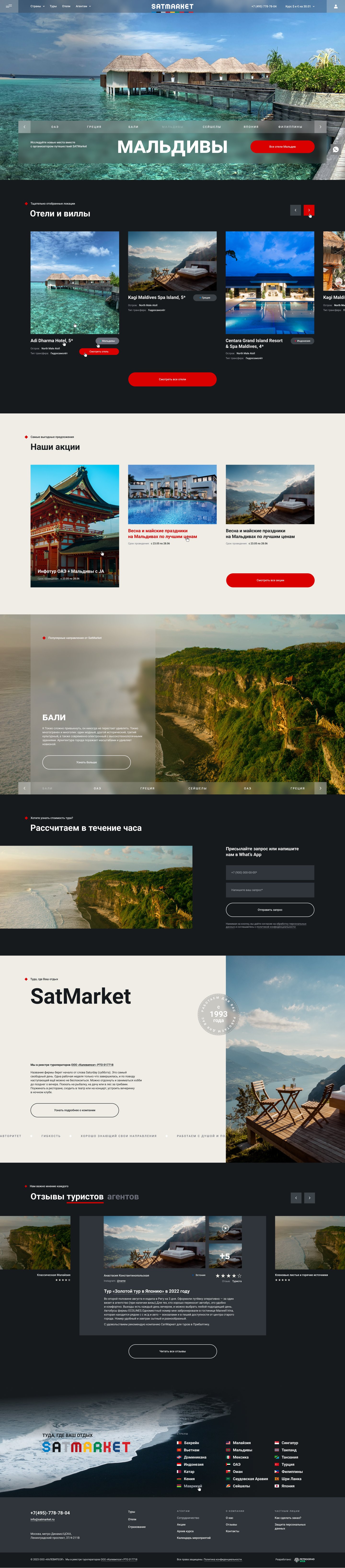 Создать новый сайт для туроператора, который после 2022 года сменил профиль с европейских направлений на Азию и экзотику. Важно было эмоционально передать атмосферу путешествий и поддержать продажи через агентскую сеть.