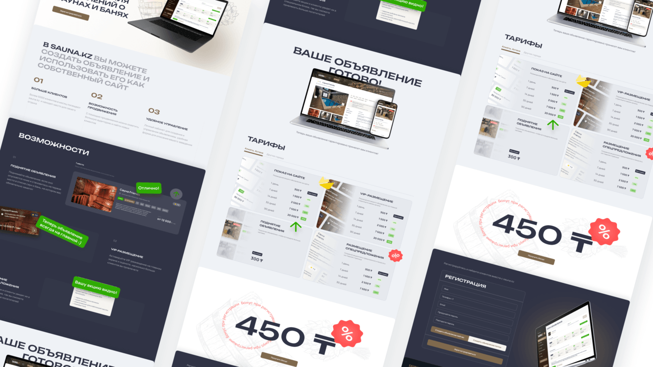 Чтобы донести до владельцев саун все плюсы размещения объявлений на Sauna.kz, мы создали отдельную страницу-лендинг, которая рассказывает о преимуществах и условиях и «продает» сервис потенциальному рекламодателю.