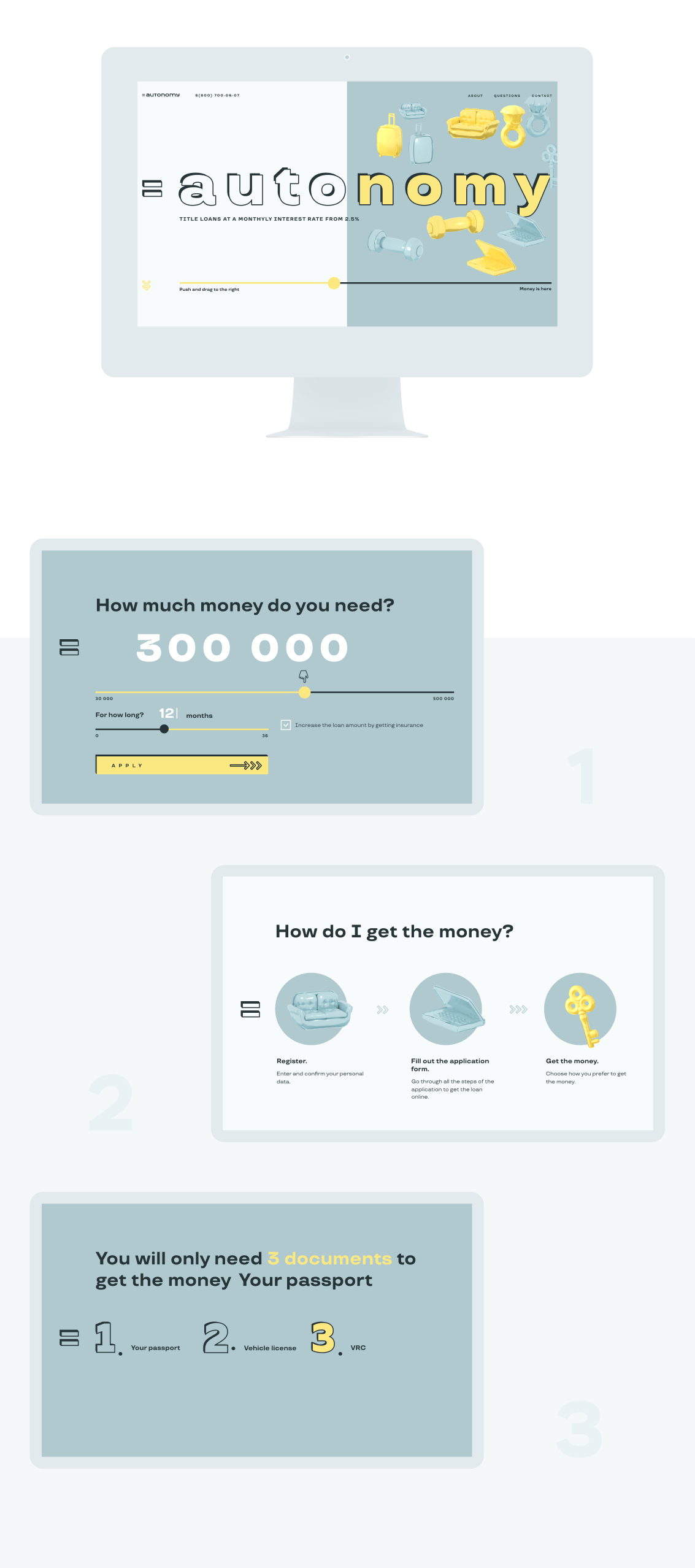 Сделали наглядный калькулятор вещей. На стартовой странице сайта пользователь должен потянуть точку вправо: чем ближе она к надписи «деньги здесь», тем больше появляется желанных предметов, которые может приобрести клиент, воспользовавшись услугами сервиса.