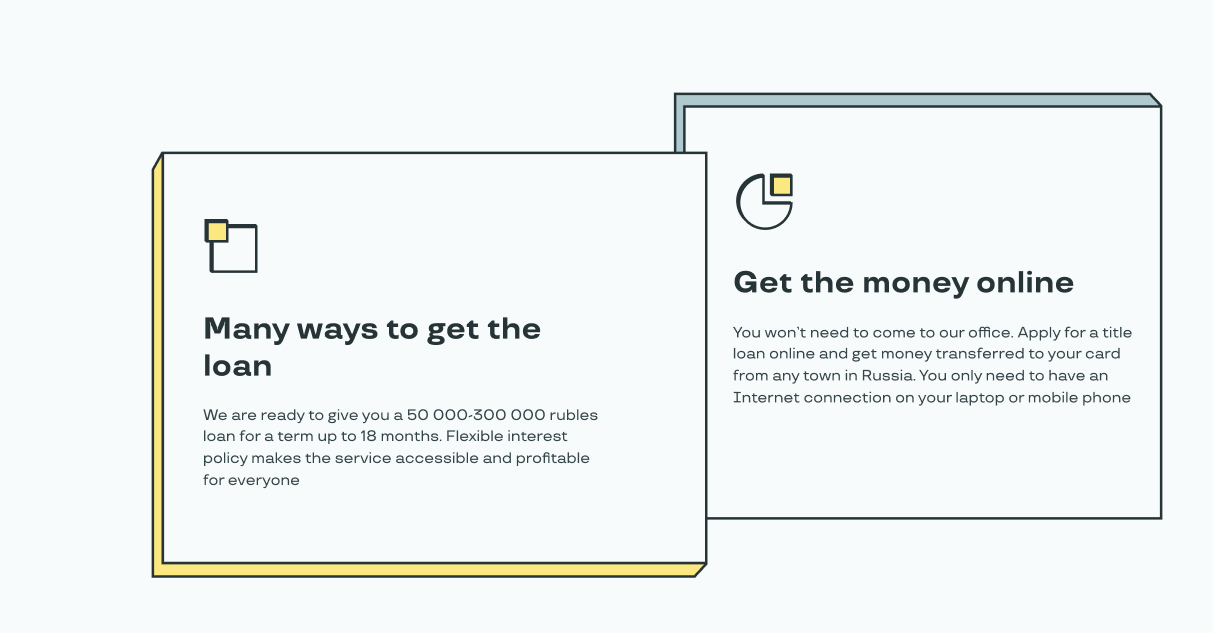 Мы сделали сервис таким образом, что для получения услуги необходимо всего три действия: регистрация, заполнение формы и выбор удобного способа получения денег. Достаточно заполнить данные по форме и даже не нужно выходить из дома.