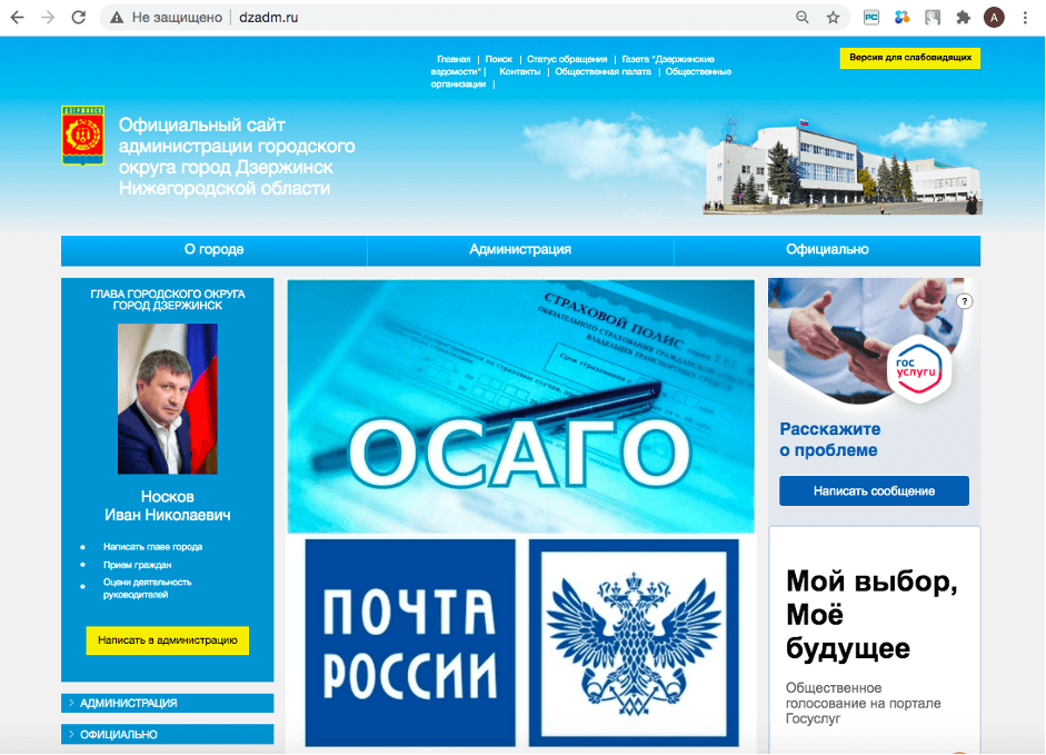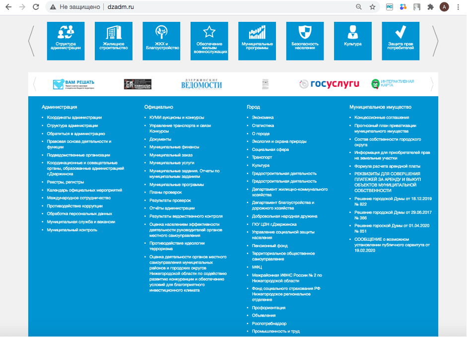 Реализация Официальный сайт администрации городского округа г. Дзержинск Нижегородской обл. под ключ.